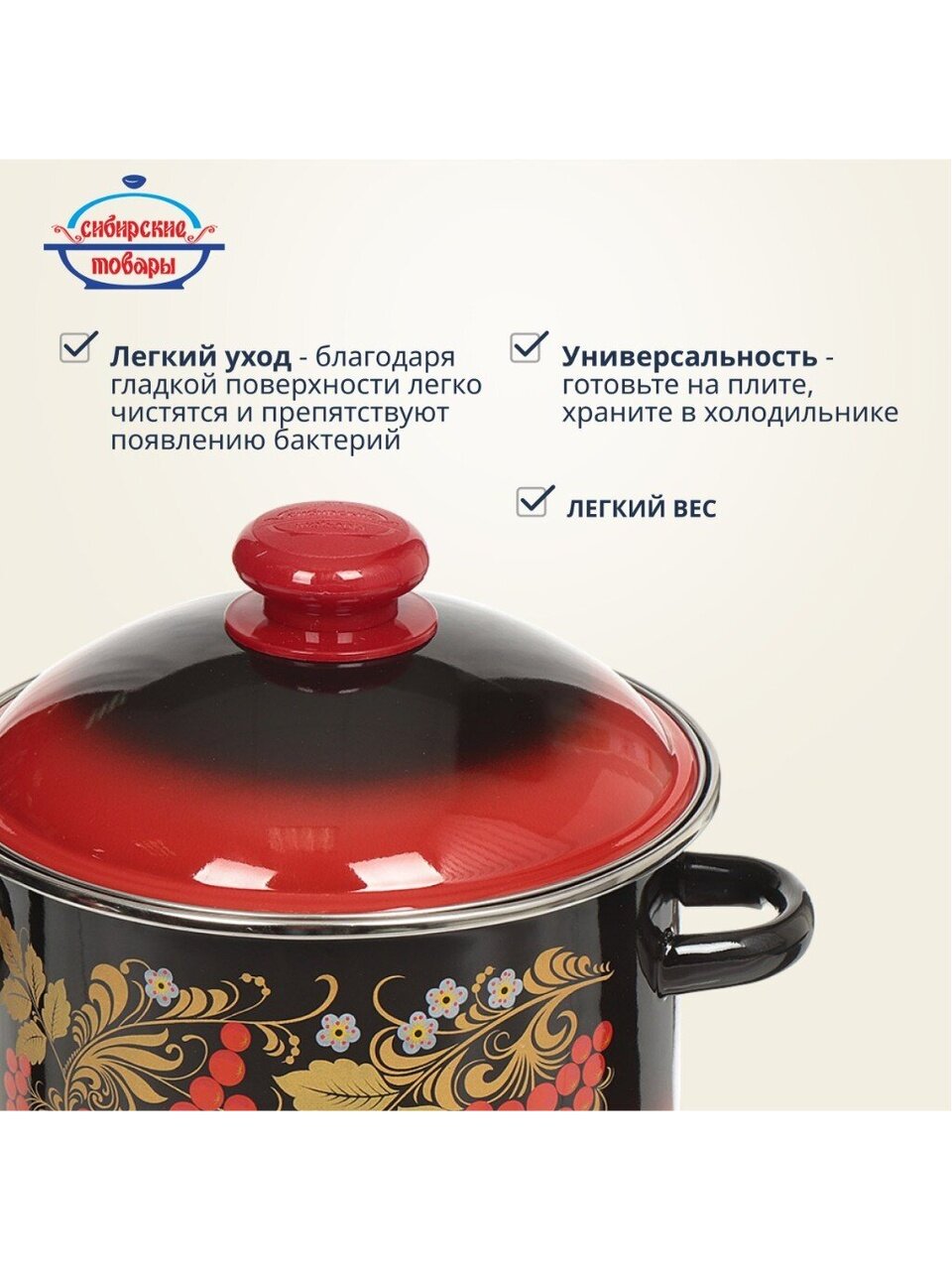 Эмалированная кастрюля «Рябинушка» от бренда «Сибирские товары» — это надежное решение для ежедневного приготовления супов, каш, макарон, пюре и пельменей. Благодаря цилиндрической форме и объемному дну (толщина 0.8 мм), тепло распределяется равномерно, что снижает риск пригорания. Эмалированное покрытие защищает сталь от коррозии, а отсутствие антипригарного слоя делает кастрюлю безопасной для здоровья. Если вы ищете, какую кастрюлю выбрать для индукционной плиты или как подобрать посуду для дачи, обратите внимание на эту модель — она совместима с большинством современных плит и легко очищается в посудомоечной машине.
