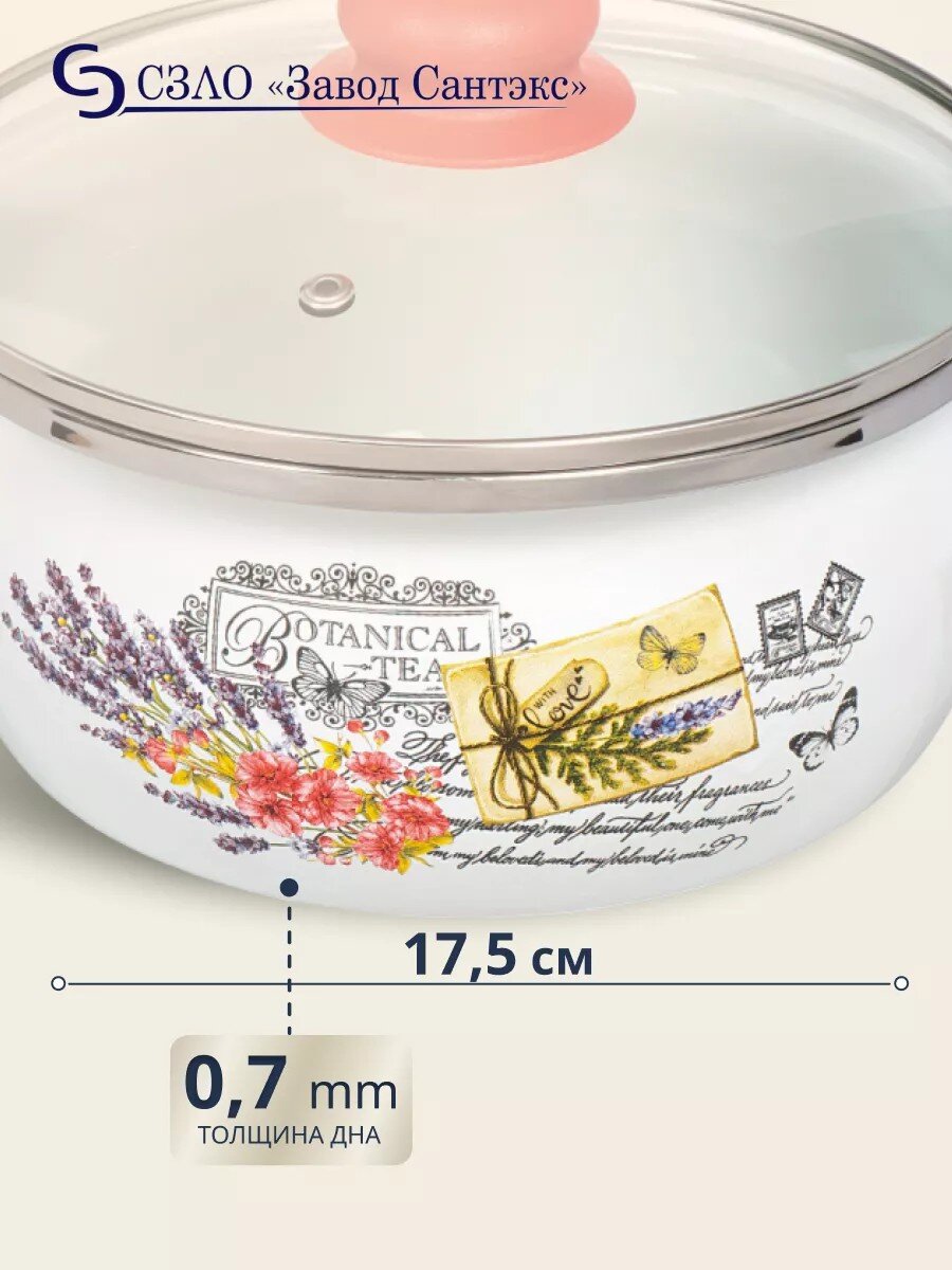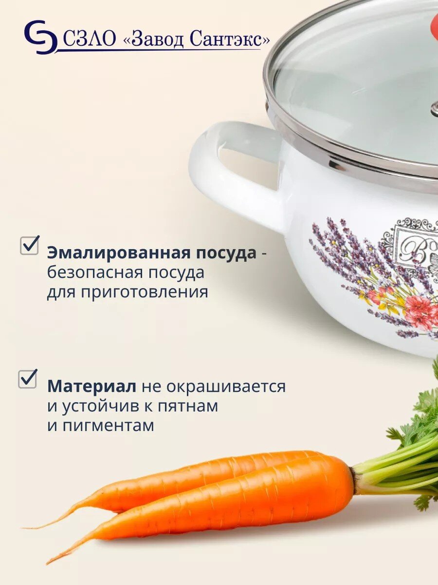 Кастрюля эмалированная Сантэкс Прованс 2.5 л — стильное и долговечное решение для индукции и любых плит. Готовьте супы, каши, пельмени без риска пригорания и хлопот с мытьём.