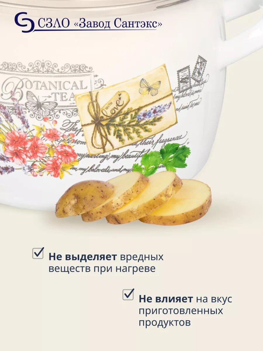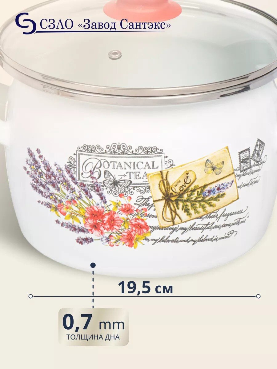 Кастрюля эмалированная Сантэкс Прованс 5 л: стиль Прованса, стеклянная крышка, подходит для индукции — идеальный выбор для дома и дачи.