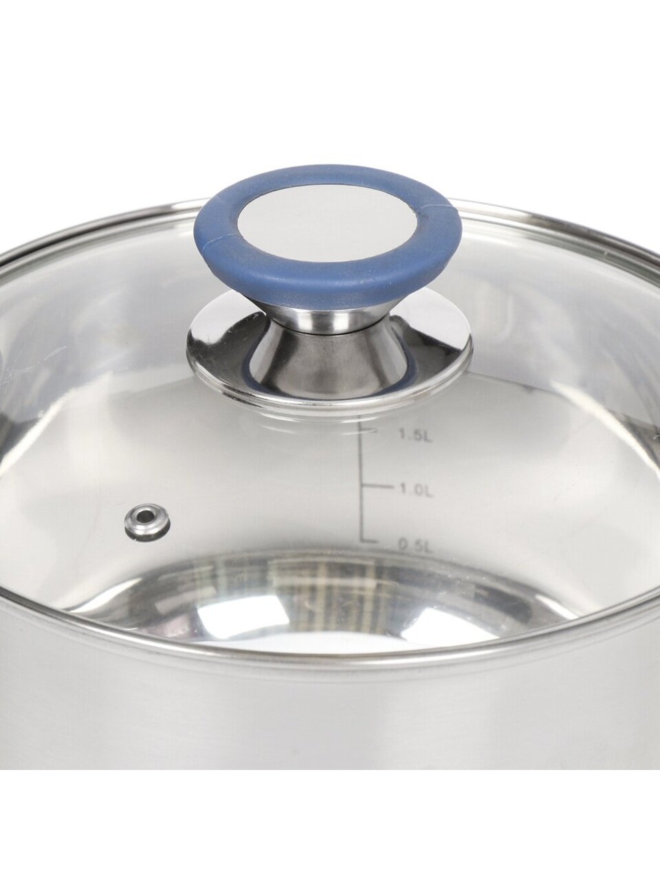 Объем — 2.9 л, диаметр кастрюли — 18 см, диаметр дна — 15.5 см, высота с крышкой — 16.5 см, крышка стеклянная, 18 см.
