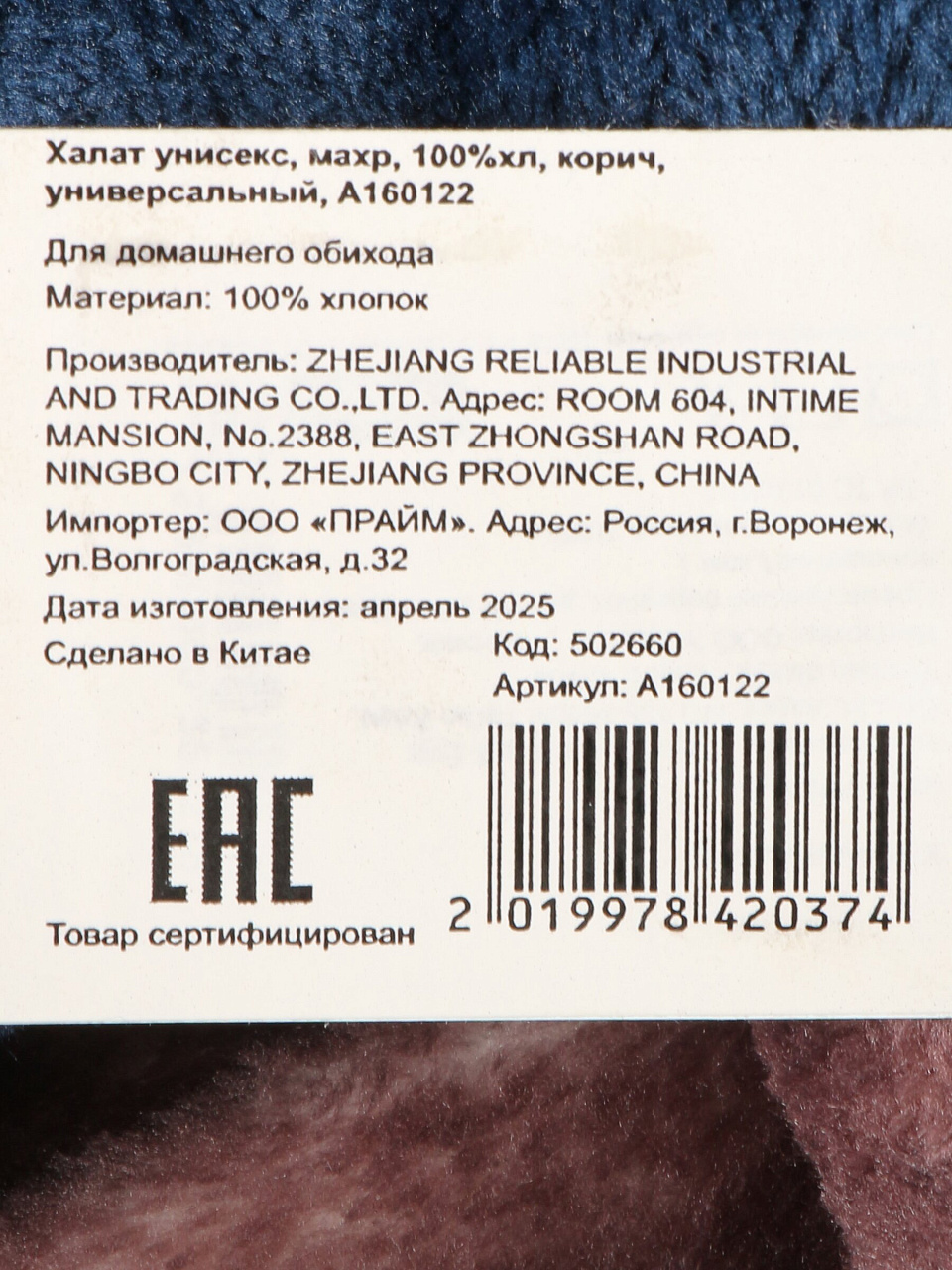 Вы можете приобрести «Халат унисекс, махр, 100%хл, корич, универсальный, A160122» и другие товары в нашем интернет-магазине в Ярославле по низким ценам и с бесплатным самовывозом.