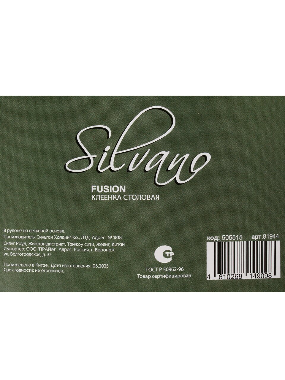 Многие спрашивают, чем отличается клеёнка на нетканой основе от обычной: такой материал плотнее, не скользит и дольше служит даже при ежедневном использовании. Клеенка Silvano Fusion не имеет водоотталкивающей пропитки, но ПВХ-слой защищает поверхность от влаги и загрязнений — достаточно протереть влажной салфеткой для поддержания чистоты.