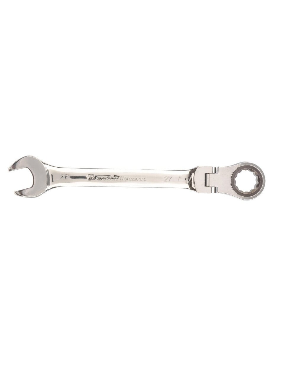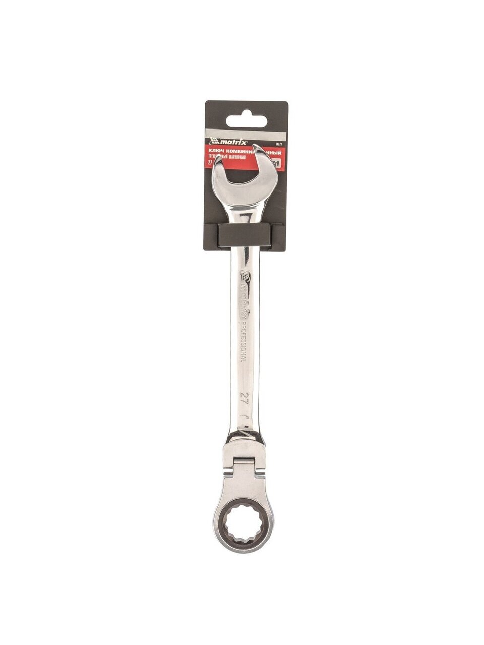 Ключ комбинированный, трещоточный шарнирный Matrix 14872, 27 мм, с покрытием «зеркальный хром», пригодится автолюбителями и мастерам для фиксации и раскручивания крепежных элементов. Трещоточный механизм повышает скорость монтажа и легко справляется даже с закисшим крепежом. А шарнир эффективен для работы в труднодоступных местах, т.к. позволяет вращать рабочую головку под разным углом (0-180 градусов).