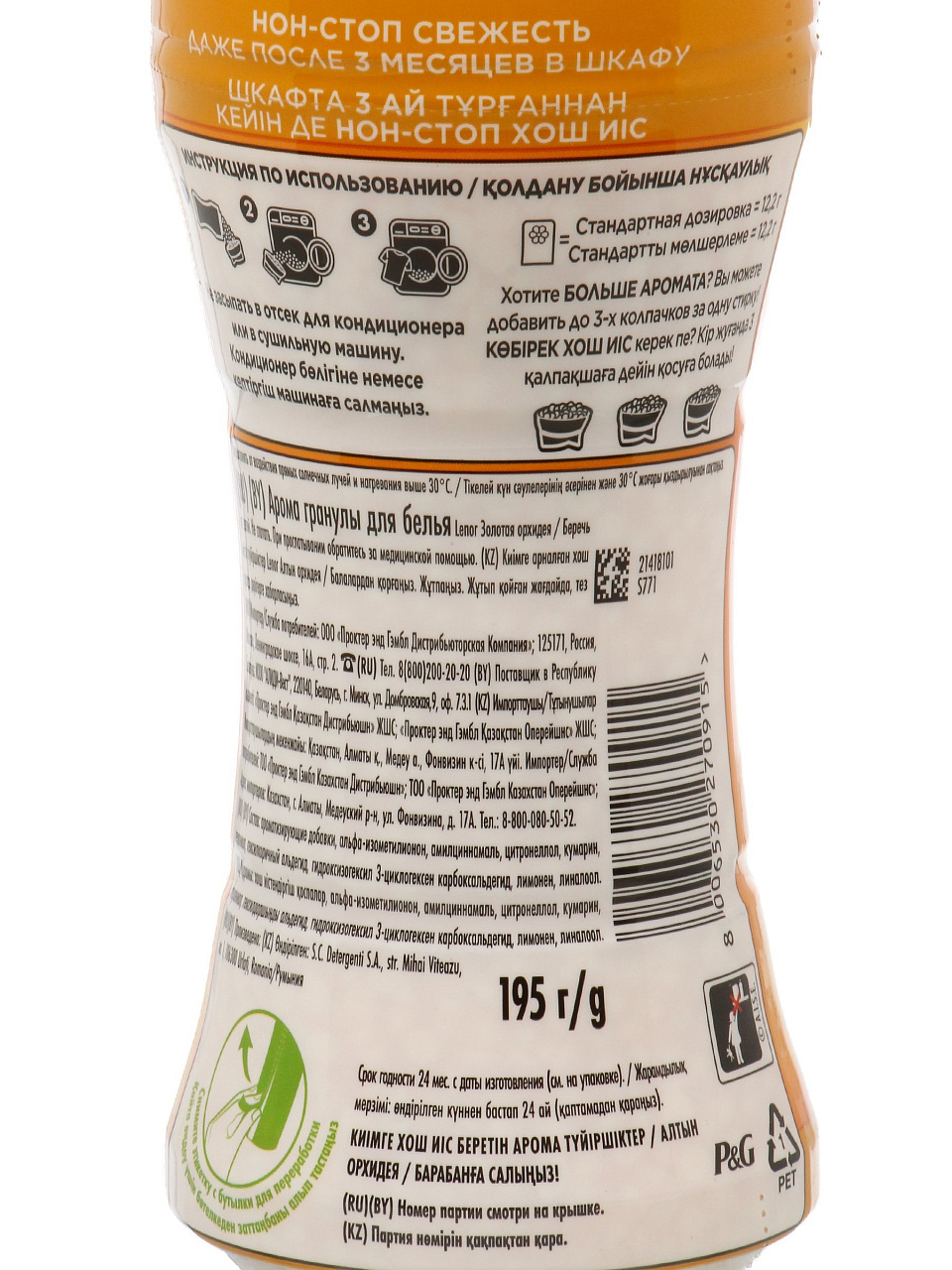 Парфюм-кондиционер Lenor «Золотая орхидея» в гранулах 195 г: стойкий аромат и свежесть белья до 12 недель. Закажите для идеального ухода за вещами.