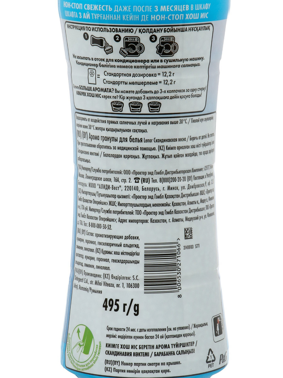 Парфюмированные гранулы Lenor Скандинавская весна 495 г: стойкий аромат свежести для вашего белья до 12 недель.