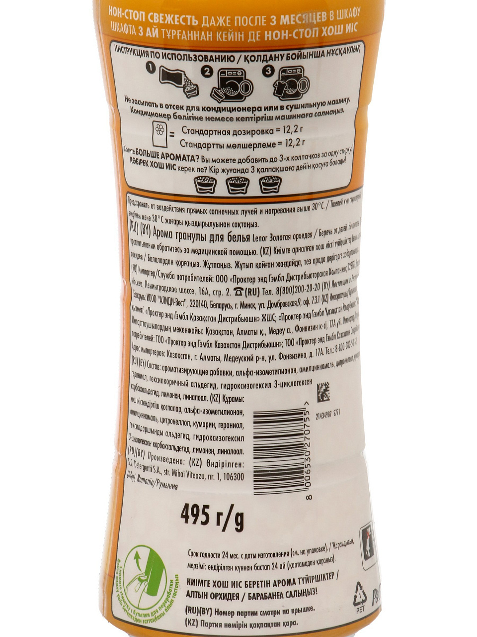 Закажите гранулы Lenor Золотая орхидея прямо сейчас и подарите вашему гардеробу изысканный аромат, который держится неделями. Мы гарантируем подлинность продукции и быструю доставку для вашего комфорта.