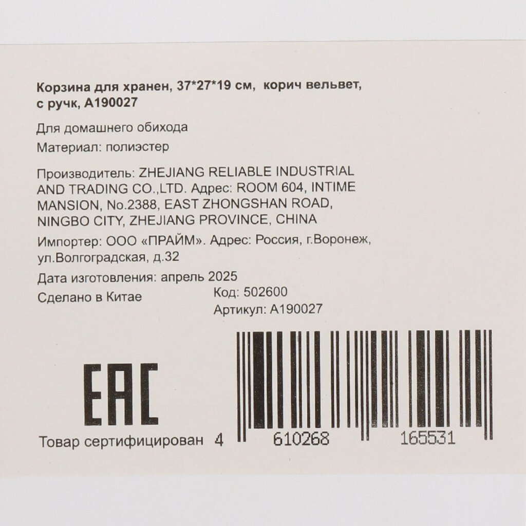 Вы можете приобрести «Корзина для хранения, 37х27х19 см, прямоугольная, вельвет, коричневая, A190027» и другие товары в нашем интернет-магазине в Старом Осколе по низким ценам и с бесплатным самовывозом.