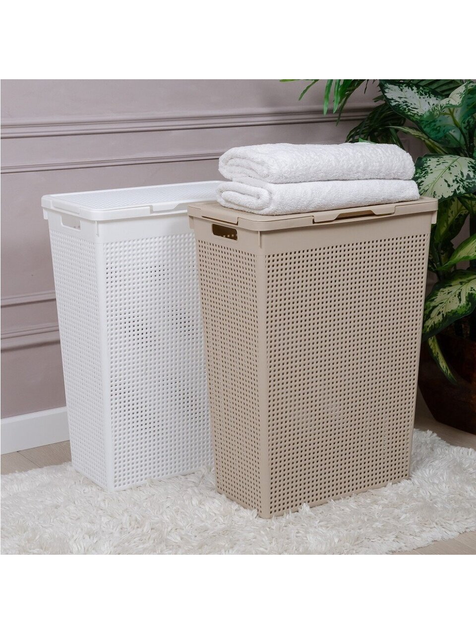 Вы можете приобрести «Корзина для белья, 50 л, 45х26х61.5 см, прямоугольная, пластик, белая, с крышкой, Violet, Лофт, 5650006» и другие товары в нашем интернет-магазине в Астрахани по низким ценам и с бесплатным самовывозом.