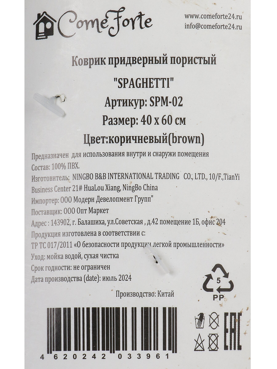 Вы можете приобрести «Коврик грязезащитный, 40х60 см, прямоугольный, резина, лапша, коричневый, Spaghetti, ComeForte, SPM-02» и другие товары в нашем интернет-магазине в Курске по низким ценам и с бесплатным самовывозом.