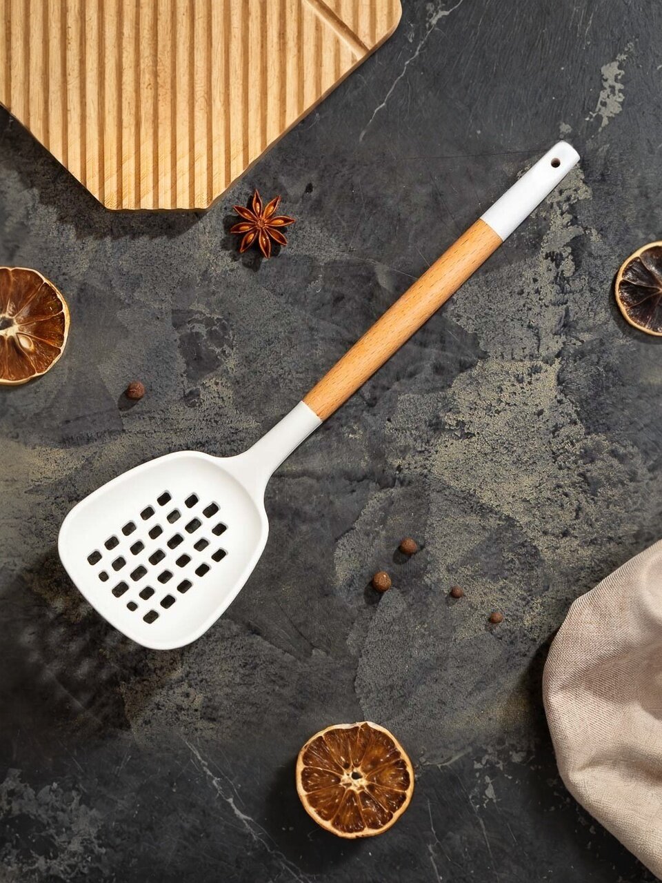 Откройте для себя удобство и стиль с шумовкой Daniks Skandi, которая станет незаменимым помощником на кухне. Изготовленная из экологичного бамбука и прочного силикона, она сочетает в себе функциональность и современный дизайн. Идеально подходит для использования в повседневной готовке, обеспечивая легкость и комфорт в каждом движении.