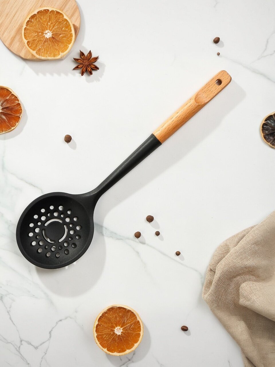 Откройте для себя идеальное сочетание стиля и функциональности с шумовкой Daniks Black. Этот кухонный аксессуар станет незаменимым помощником для каждого, кто ценит качество и удобство в приготовлении пищи. Изготовленная из бамбука и силикона, она гарантирует долговечность и безопасность в использовании.