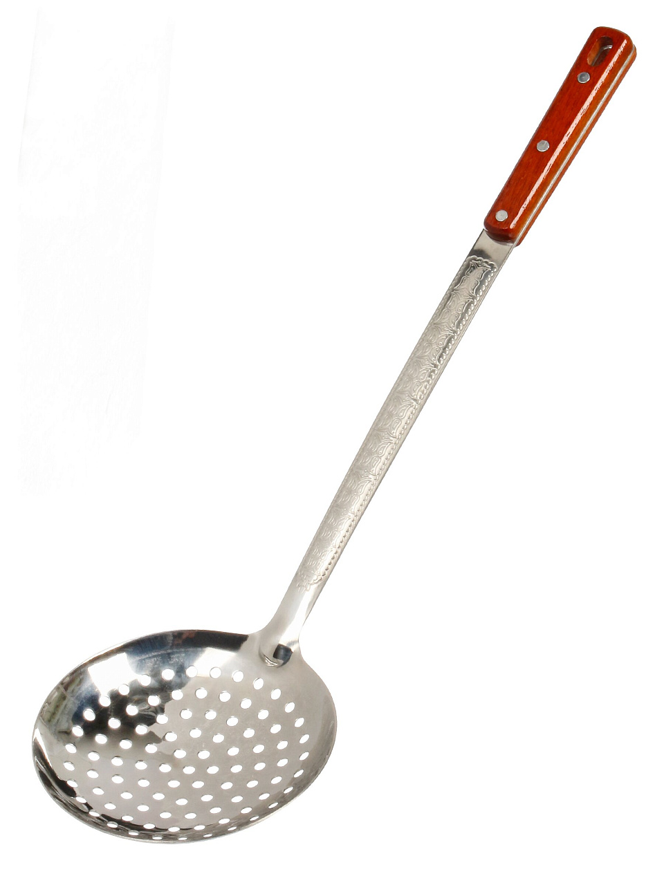 - Уникальное сочетание: шумовка из нержавеющей стали с эргономичной деревянной ручкой — безопасно для рук и антипригарных поверхностей