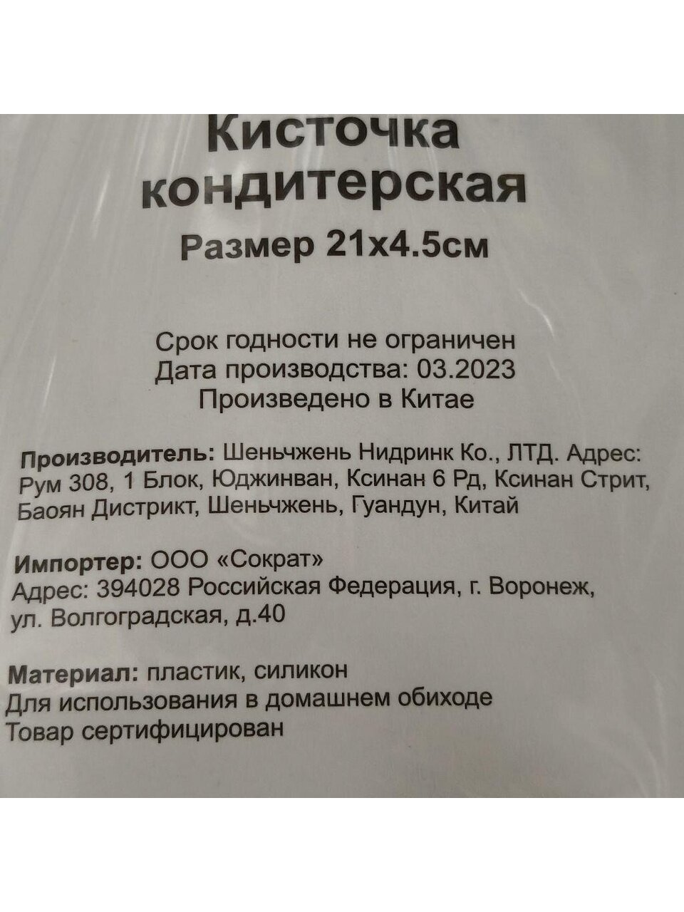 При приготовлении кондитерских изделий и других блюд не обойтись без использования кондитерской кисти. Это приспособление используется для нанесения крема, глазури, удобно для смазывания маслом противня или выпечки перед запеканием в духовке. Щетинки изготовлены из синтетического материала – гигиеничного, безопасного для использования с продуктами питания. Удобная пластмассовая ручка оснащена отверстием для крючка, кисть можно повесить или убрать в шкаф для комфортного хранения. После использования тщательно промывайте кисть с моющими средствами.