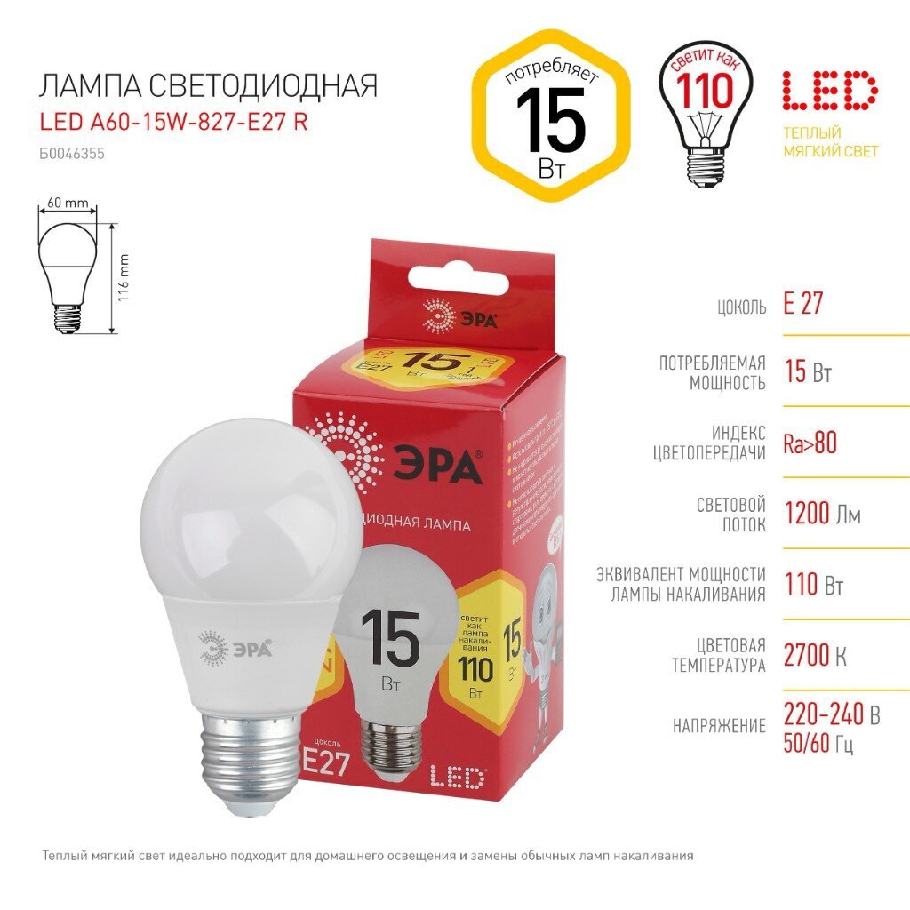 Вы можете приобрести «Лампа светодиодная E27, 15 Вт, 110 Вт, 170-265 В, груша, 2700 К, теплый белый свет, Эра, Б0046355» и другие товары в нашем интернет-магазине в Курске по низким ценам и с бесплатным самовывозом.