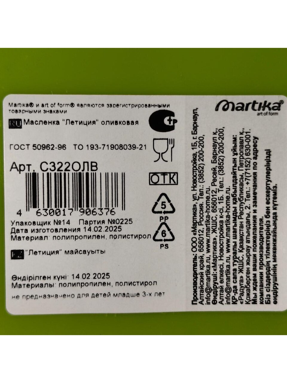Вы можете приобрести «Масленка пластик, оливковая, Martika, Летиция, С322ОЛВ» и другие товары в нашем интернет-магазине в Брянске по низким ценам и с бесплатным самовывозом.