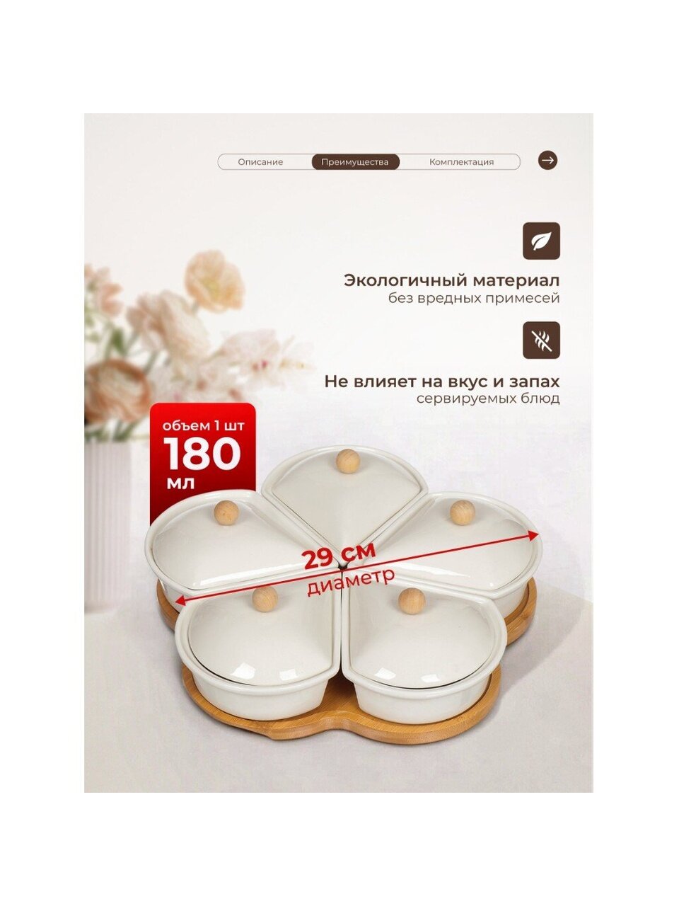 Вы можете приобрести «Менажница керамика, 29х9 см, 5 секций, Цветок, Y146» и другие товары в нашем интернет-магазине в Обнинске по низким ценам и с бесплатным самовывозом.