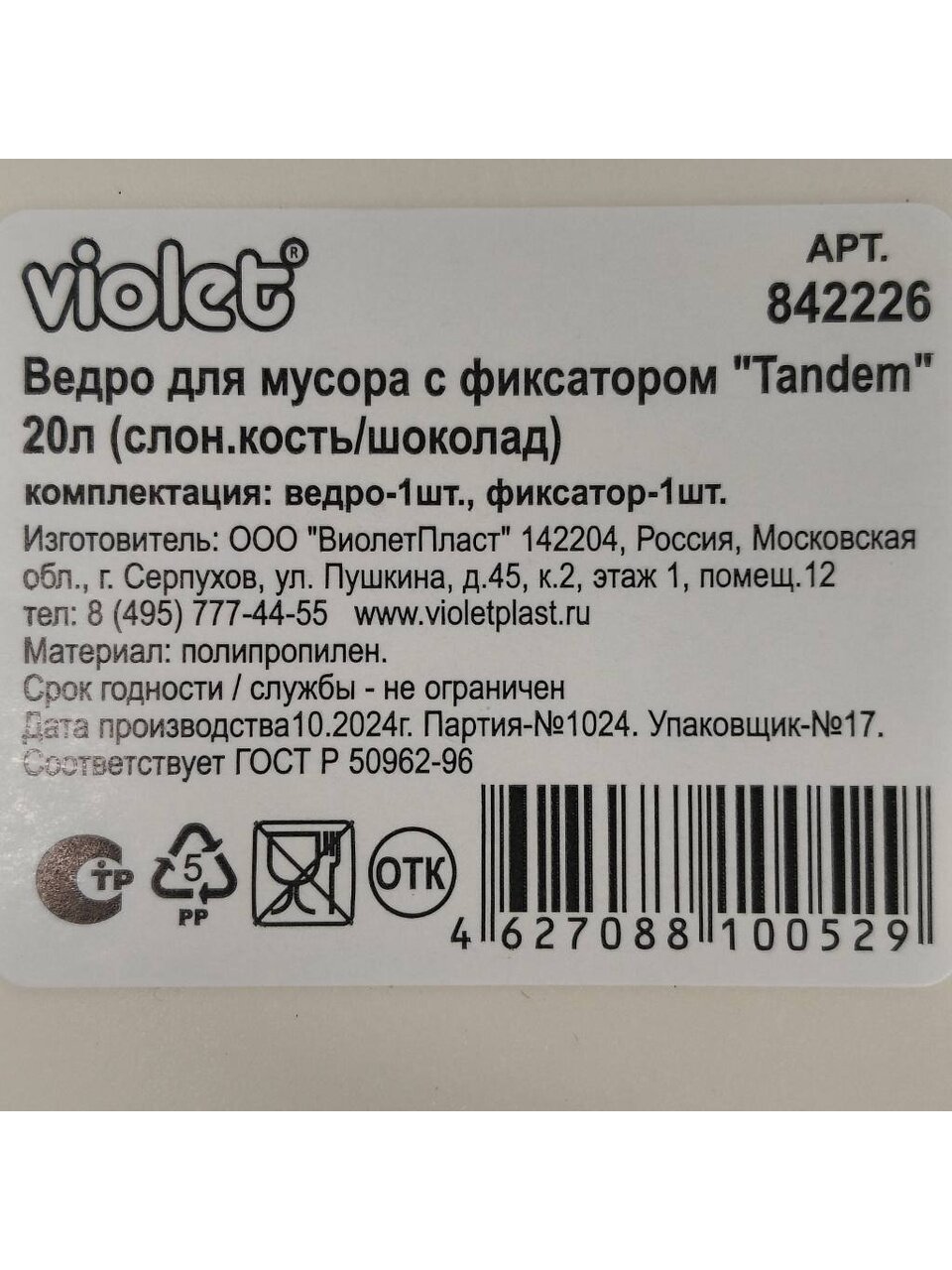 Вы можете приобрести «Контейнер для мусора пластик, 20 л, прямоугольный, с фиксатором, слоновая кость, шоколад, Violet, Tandem, 842226» и другие товары в нашем интернет-магазине в Клинцах по низким ценам и с бесплатным самовывозом.