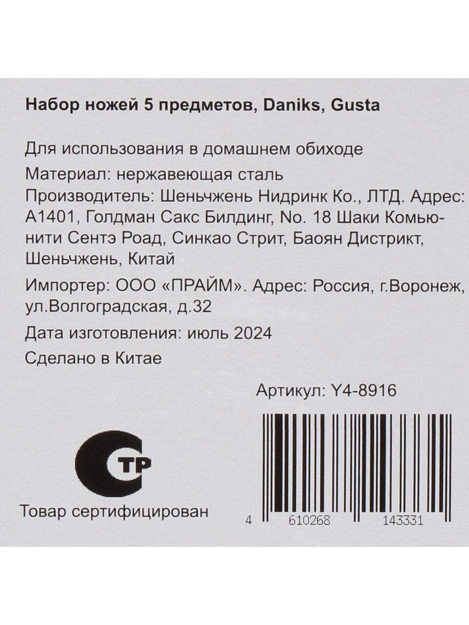 Вы можете приобрести «Набор ножей 5 предметов, на блистере, нержавеющая сталь, рукоятка пластик, Daniks, Gusta, Y4-8916» и другие товары в нашем интернет-магазине в Армавире по низким ценам и с бесплатным самовывозом.