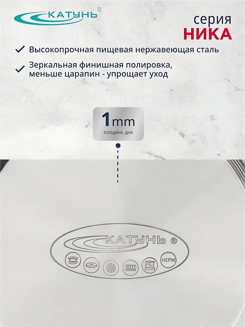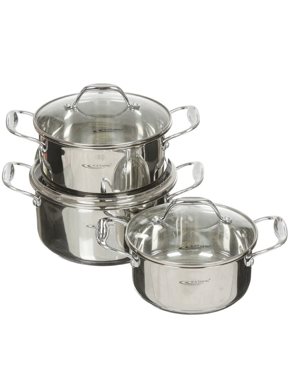 Набор посуды из нержавеющей стали Катунь Ника 6 предметов: универсальное решение для кухни и дачи — оптимальный объём, подходит для всех плит, выгодная покупка.