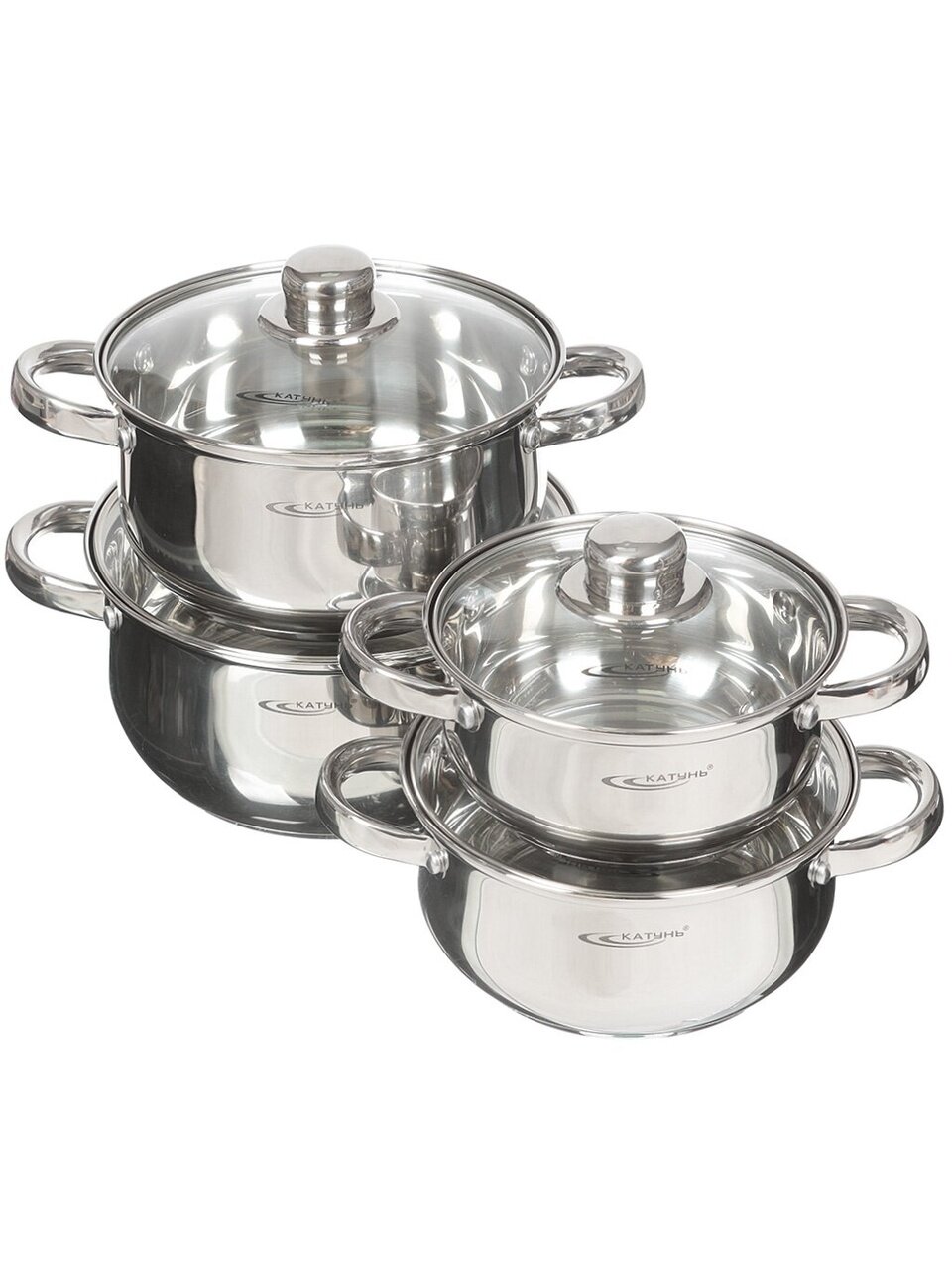Набор посуды из нержавеющей стали Катунь Гретта 8 предметов: универсальное решение для дома и дачи. Подходит для индукционных плит, оптимальные размеры кастрюль.