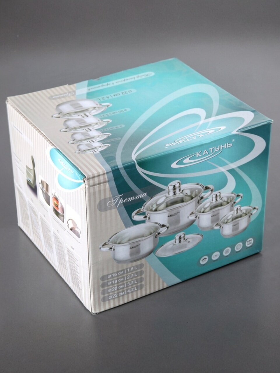 Вы можете приобрести «Набор посуды нержавеющая сталь, 8 предметов, кастрюли 1.6,2.2,3.2,4.2 л, индукция, Катунь, Гретта, KT04-C» и другие товары в нашем интернет-магазине в Ярославле по низким ценам и с бесплатным самовывозом.