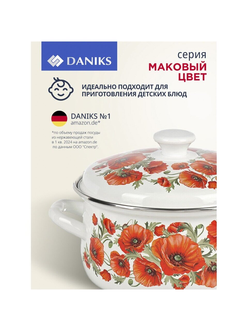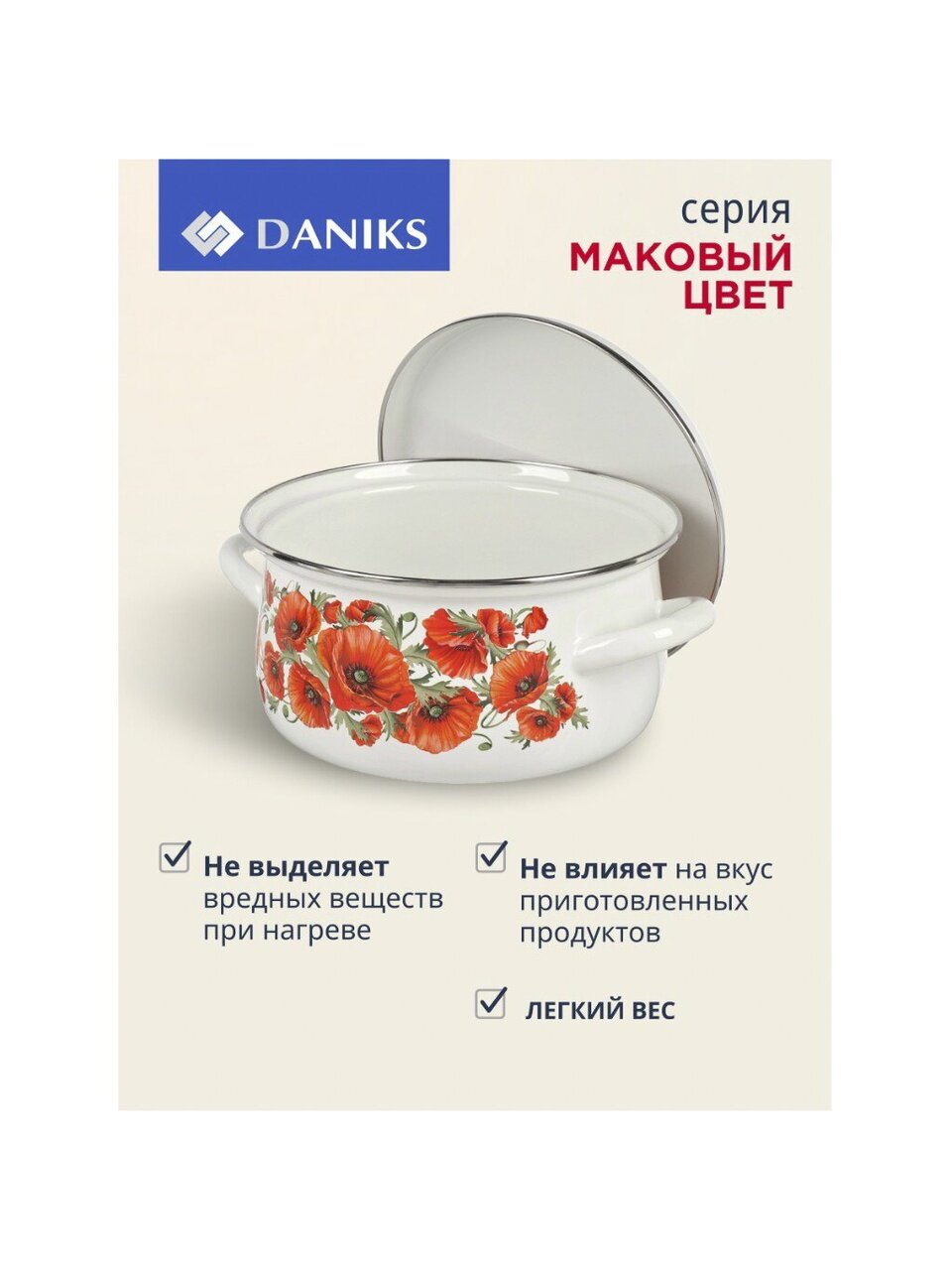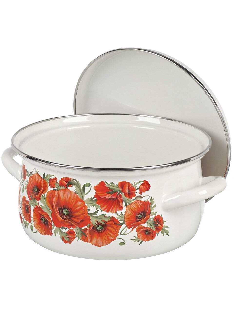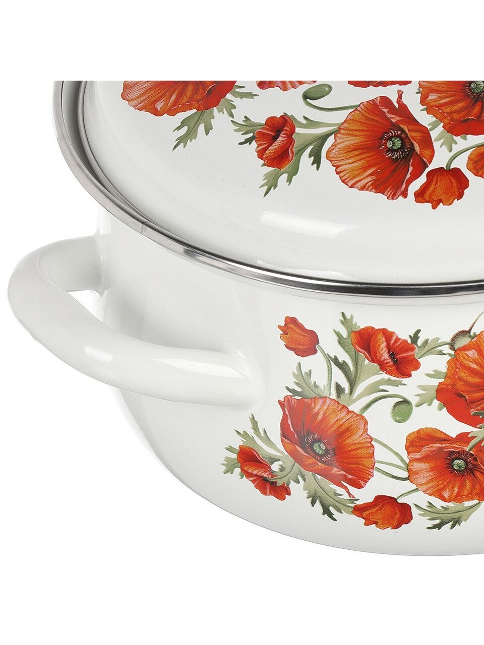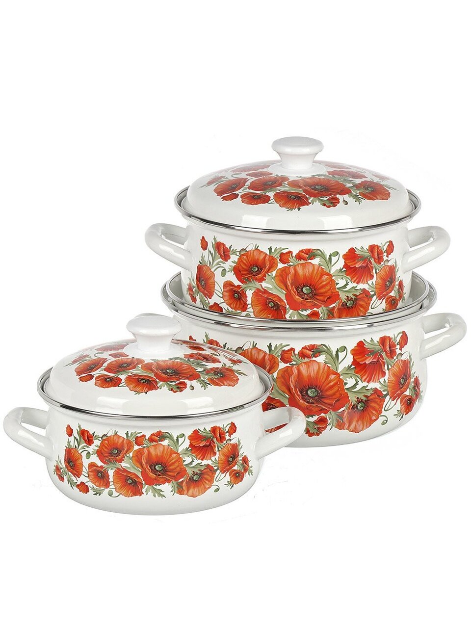 Набор кастрюль Daniks «Маковый цвет-1» из эмалированной стали: 6 предметов для стильной кухни, долговечность и универсальность по выгодной цене.
