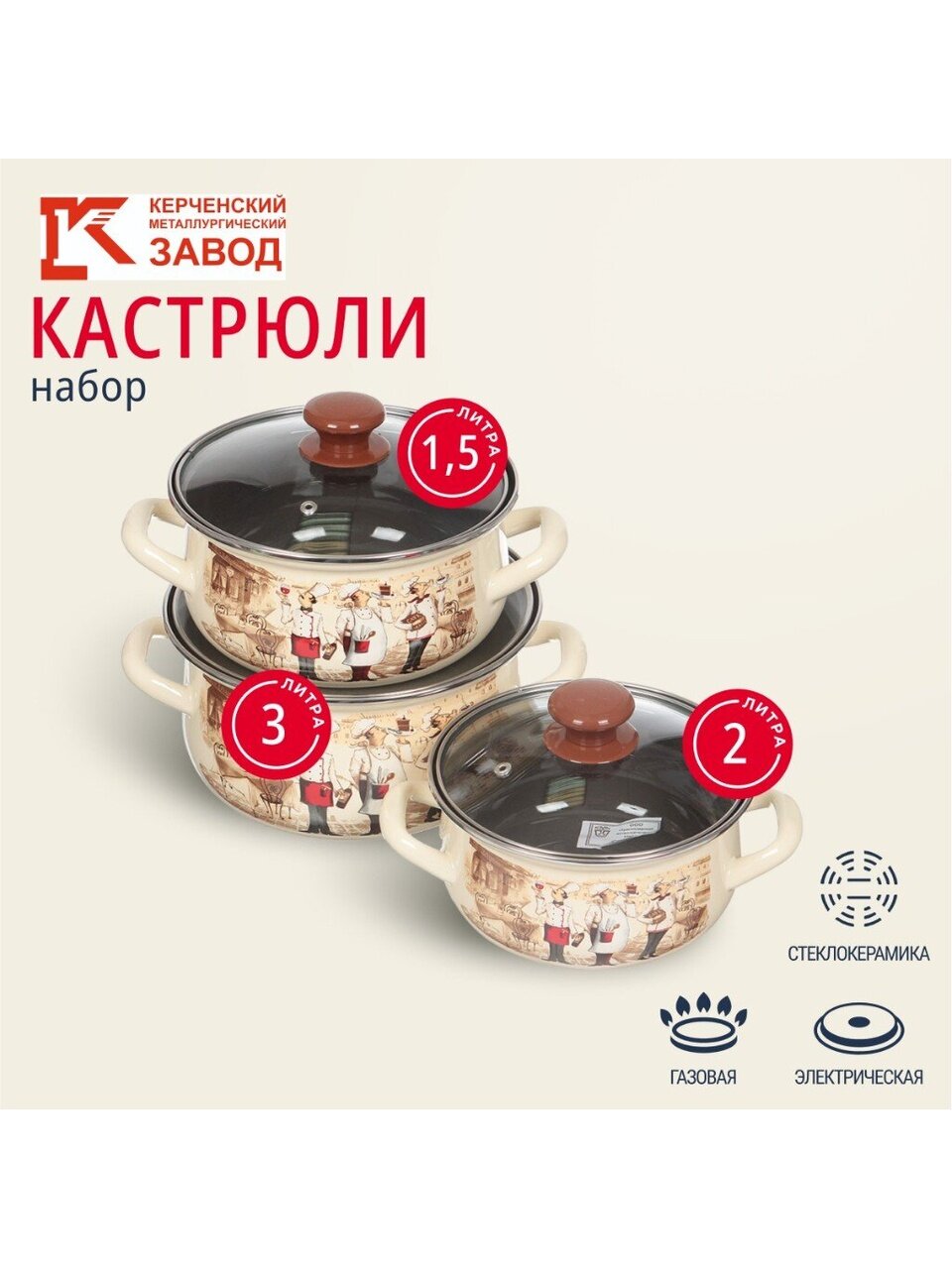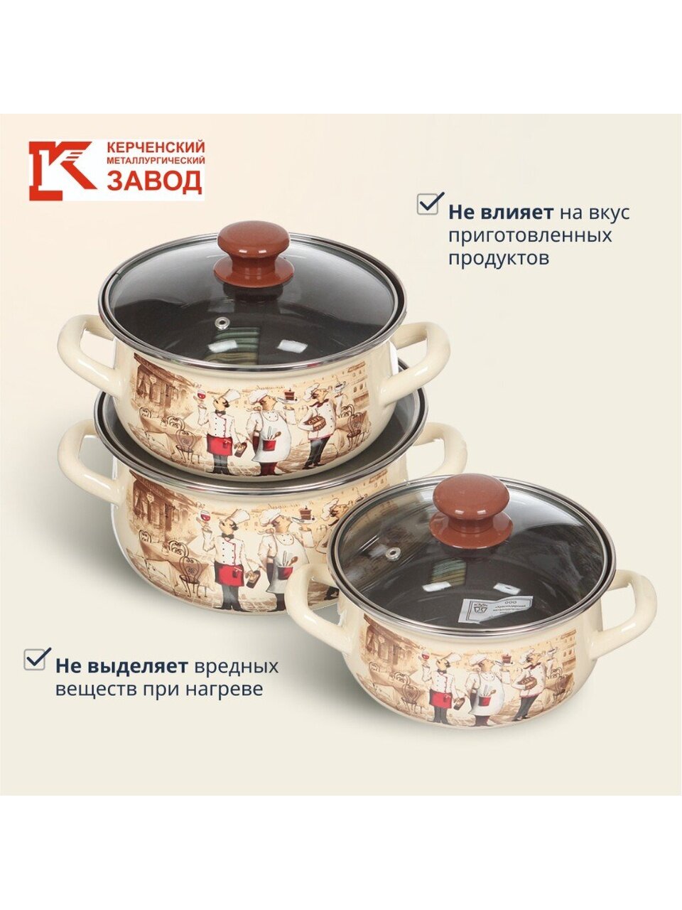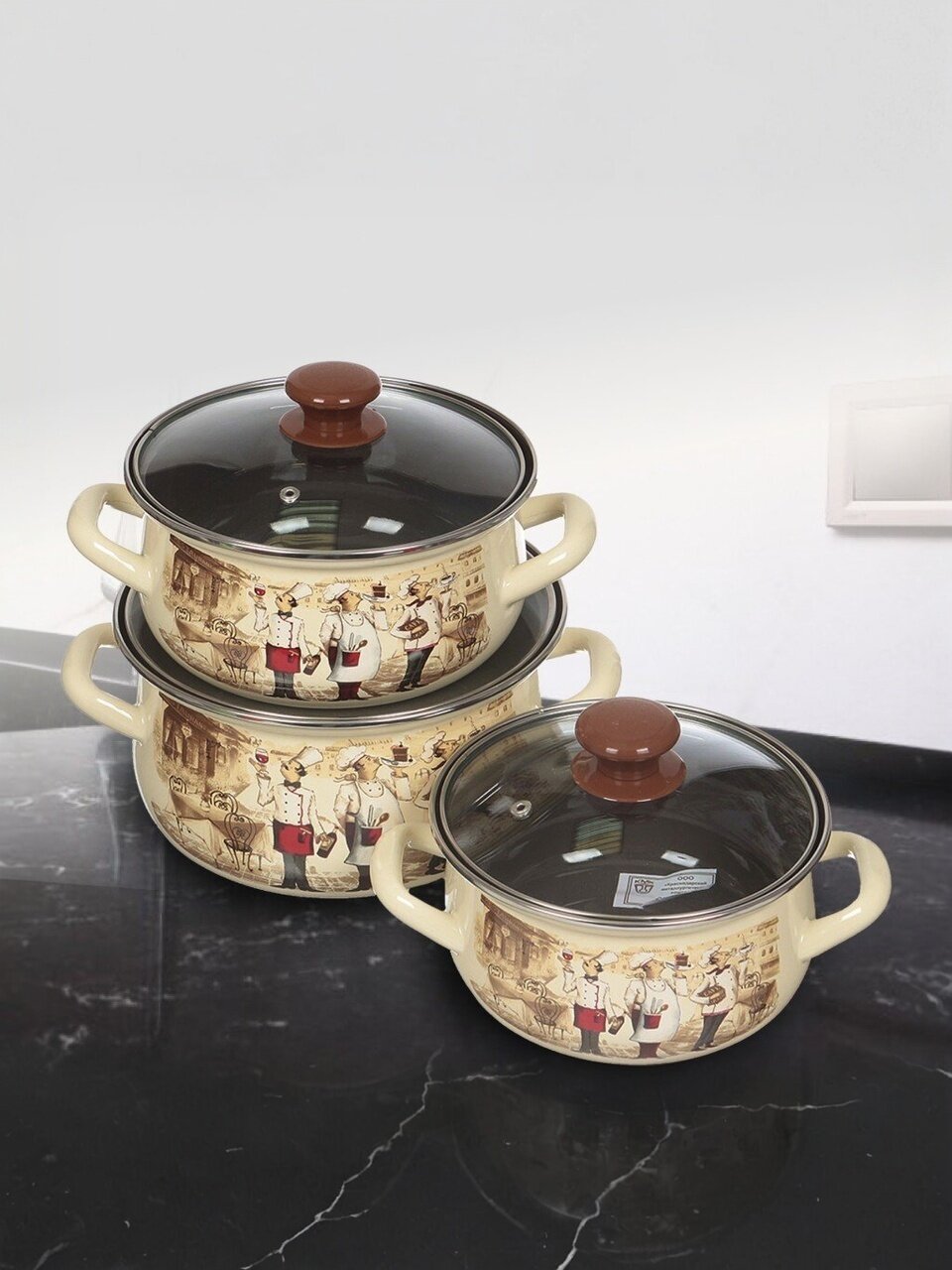 Набор эмалированных кастрюль 6 предметов Сомелье-Экстра — практичное решение для дома и дачи: 3 объёма, безопасная сталь, выгодная цена от завода-производителя.