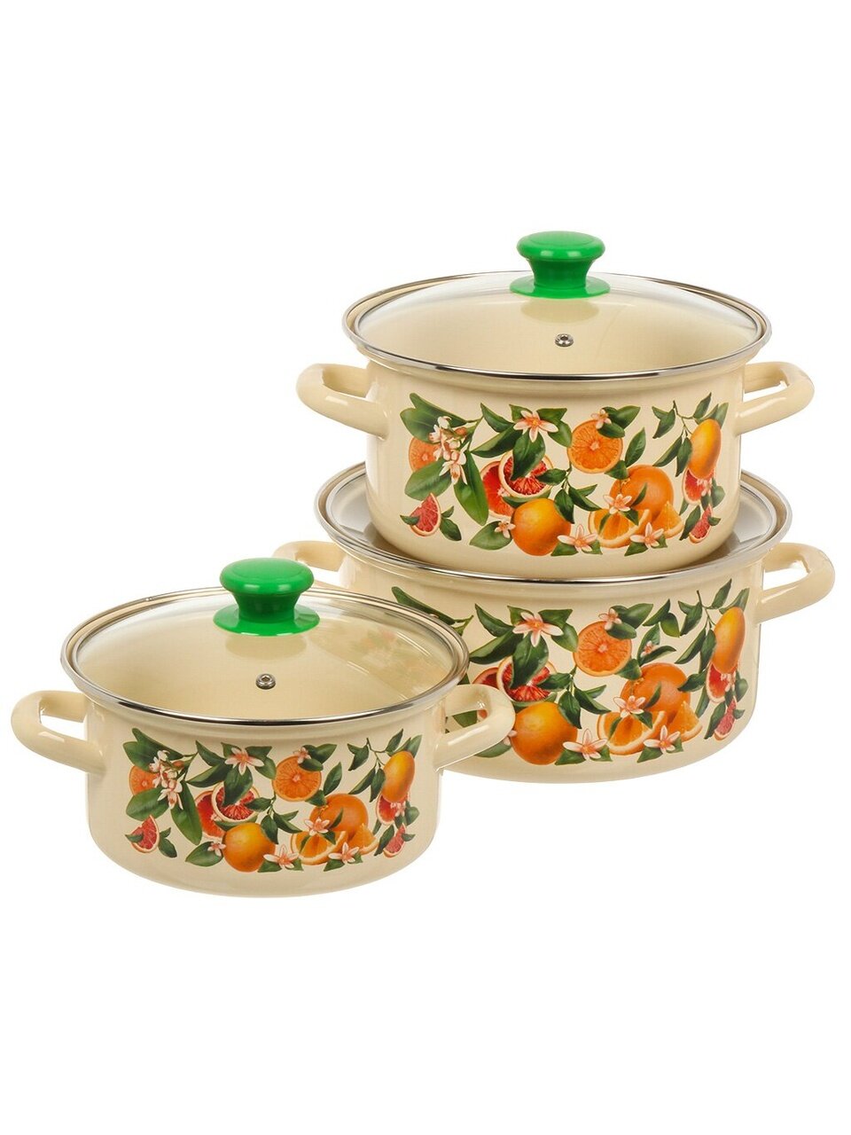 Набор эмалированной посуды Цитрус-1-Экстра 3 шт. (2.3/3/4 л, слоновая кость): долговечность, стиль и универсальность для вашей кухни — выгодно купить для дома и дачи