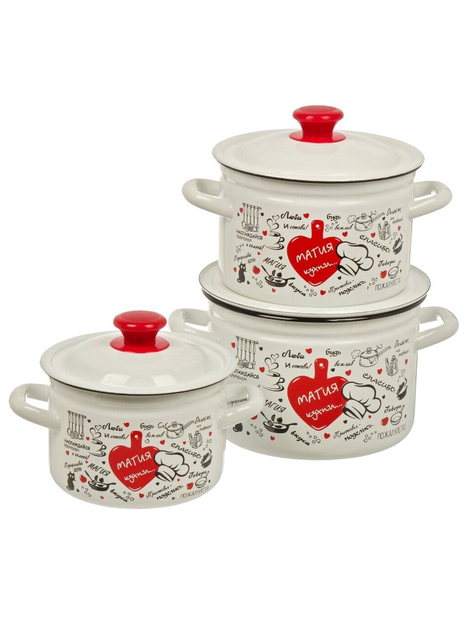 Набор эмалированной посуды 2/3/4 л «Магия кухни-1» — идеальный выбор для дома и дачи: долговечная сталь, универсальные объёмы, доступная цена.