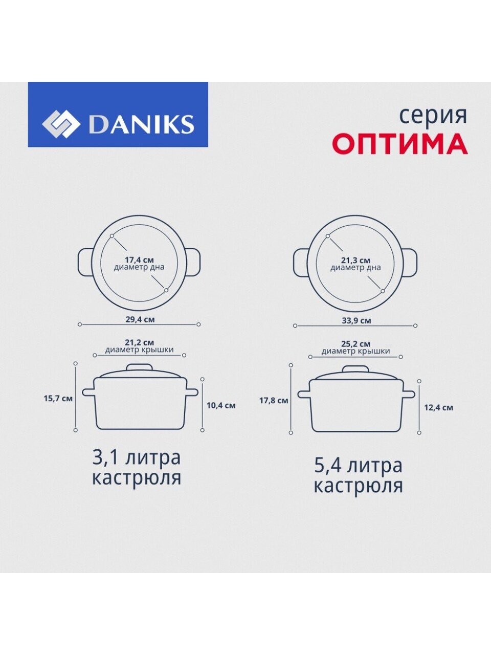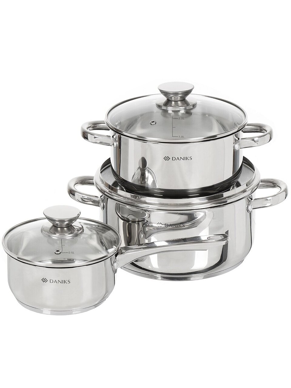 Набор посуды Daniks Оптима из нержавеющей стали на 6 предметов: универсальный выбор для индукции и любых плит, долговечность, выгодная цена.