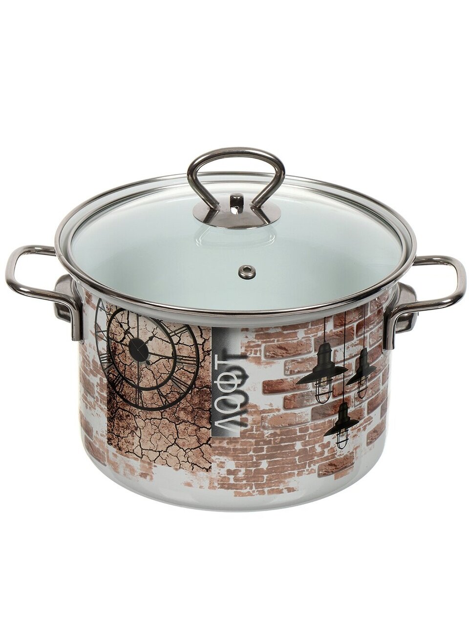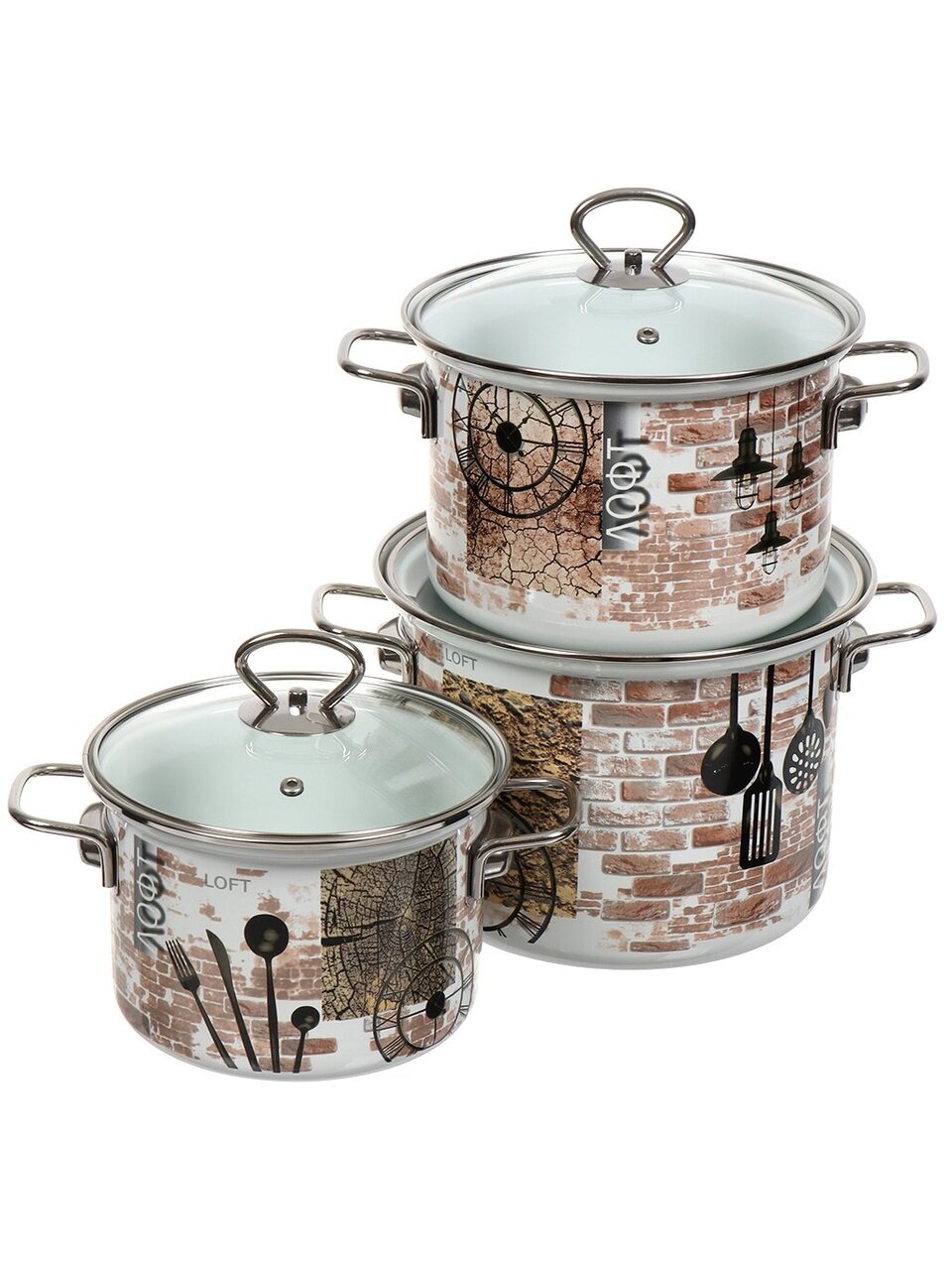 Набор посуды эмалированная сталь, 6 предметов, кастрюли 2.4,3.4,5 л, индукция, Керченский металлургический завод, Лофт-5-1-Элит, белый