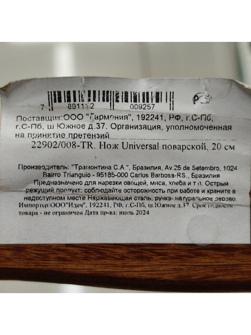 Вы можете приобрести «Нож кухонный Tramontina, Universal, шеф-нож, нержавеющая сталь, 20 см, рукоятка дерево, 22902/008-TR» и другие товары в нашем интернет-магазине в Казани по низким ценам и с бесплатным самовывозом.
