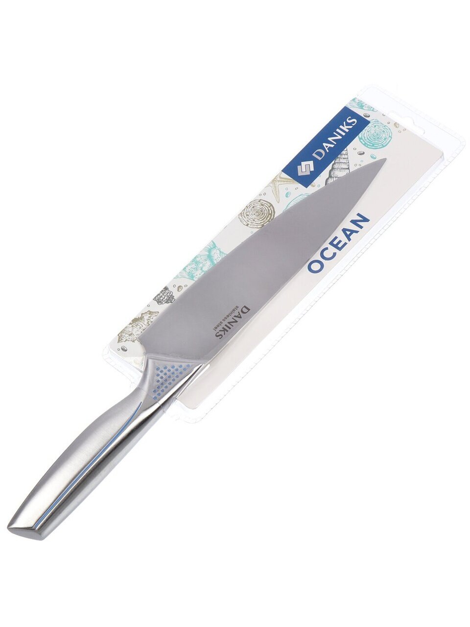 Вы можете приобрести «Нож кухонный Daniks, Ocean, шеф-нож, нержавеющая сталь, 20 см, рукоятка нержавеющая сталь, YW-A429B-CH» и другие товары в нашем интернет-магазине в Казани по низким ценам и с бесплатным самовывозом.