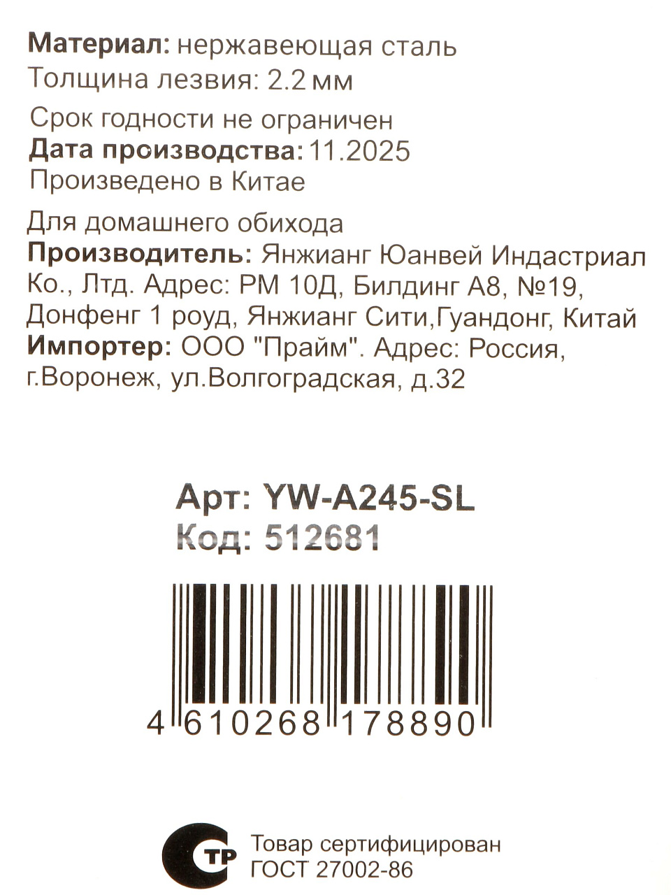 - Артикул производителяYW-A245-SL