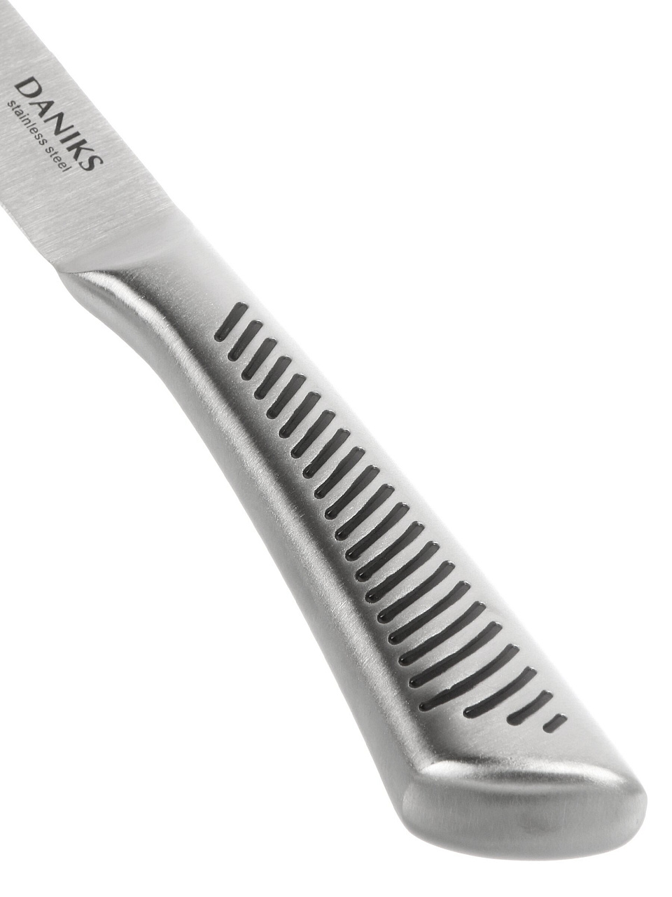 Универсальный кухонный нож Daniks Optic 12.5 см — надежный выбор для дома и дачи: стальная рукоятка, долговечная нержавеющая сталь, премиальный стиль по доступной цене.