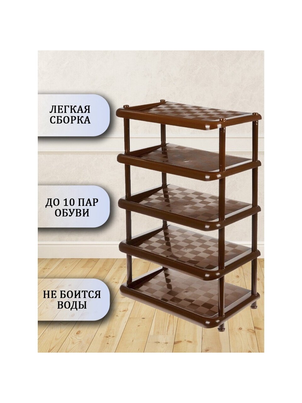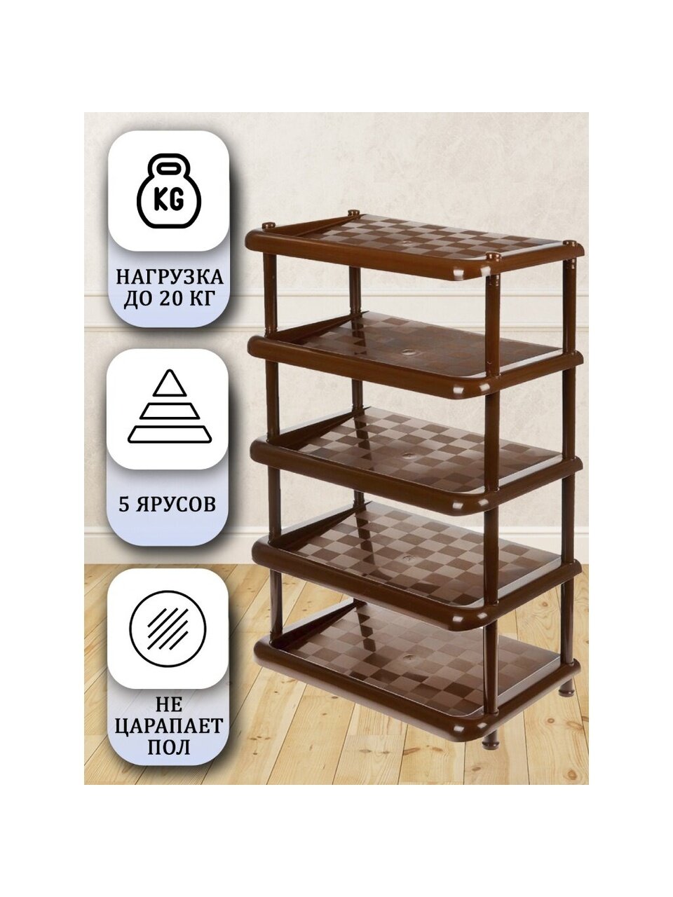 Вы можете приобрести «Полка для обуви, пластик, 5 секций, 49.7х30.7х83.7 см, коричневая, Idea, М2710» и другие товары в нашем интернет-магазине в Шахтах по низким ценам и с бесплатным самовывозом.