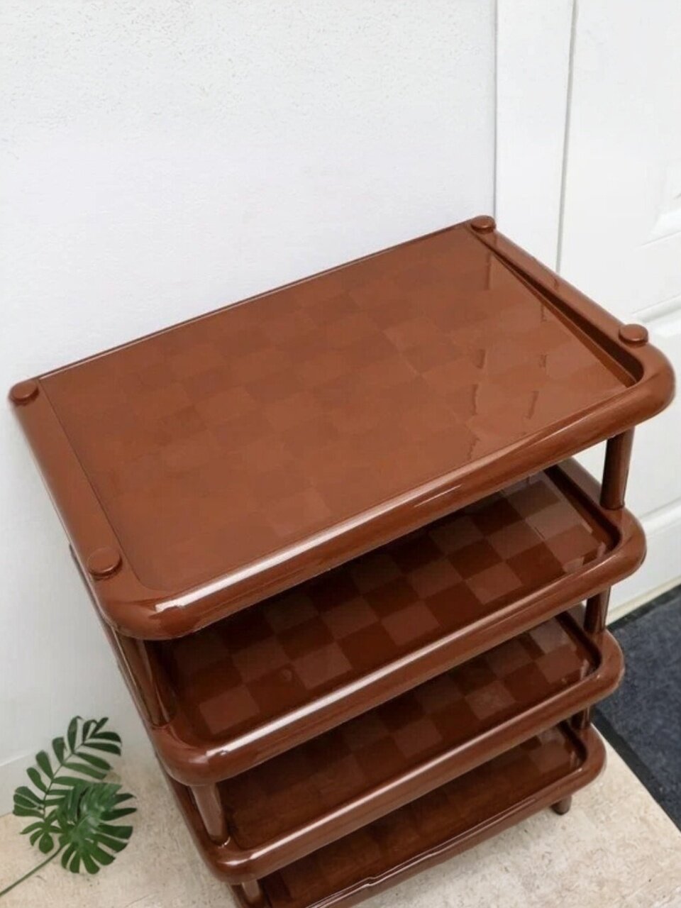 - Преимущество пластиковых этажерок в их лёгкости, устойчивости к влаге и простоте в уходе;