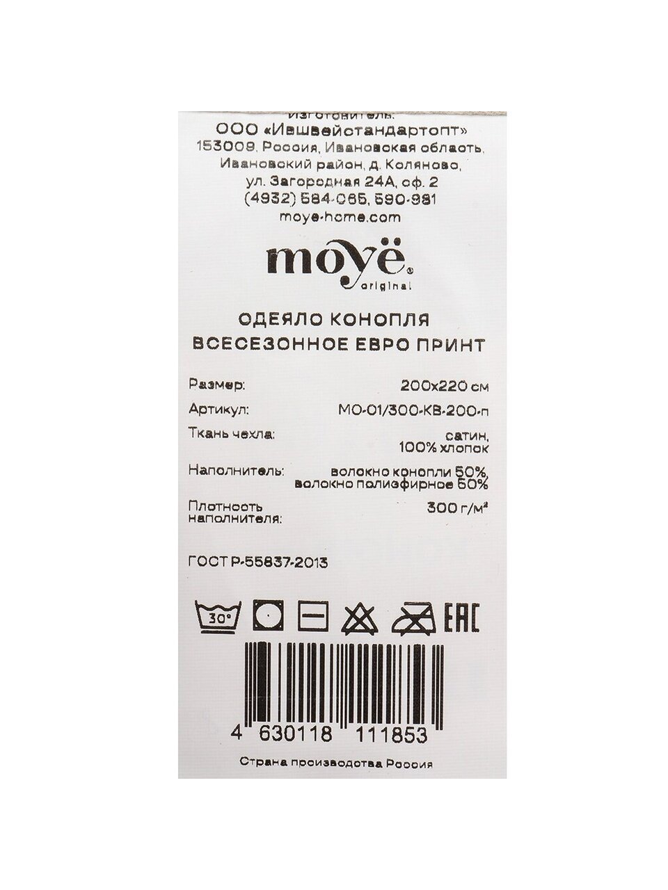 Одеяло евро 200х220 Moyё с конопляным наполнителем: всесезонный комфорт, натуральные материалы, идеальный выбор для аллергиков и ценителей уюта.