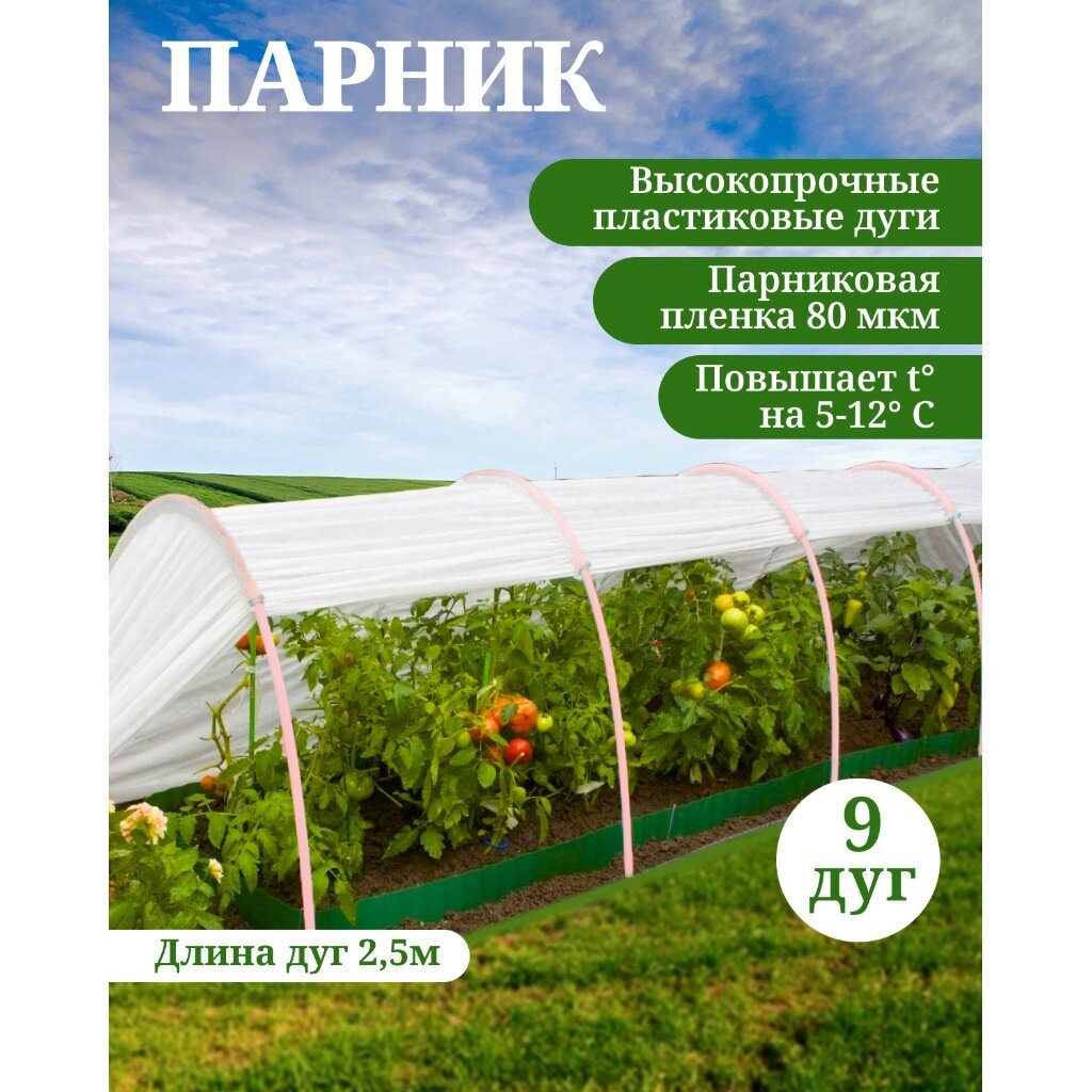 Благодаря прочному пластиковому каркасу и удобной конструкции, парник легко устанавливается и обеспечивает долговечность использования. Длина дуги в 2.5 м и диаметр трубы 16 мм делают его устойчивым к внешним воздействиям, а клипсы надежно фиксируют пленку, предотвращая ее смещение.