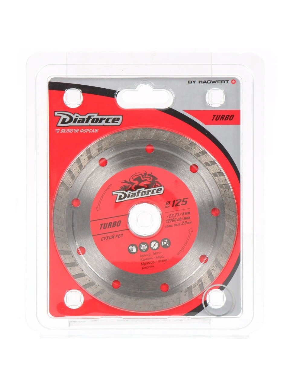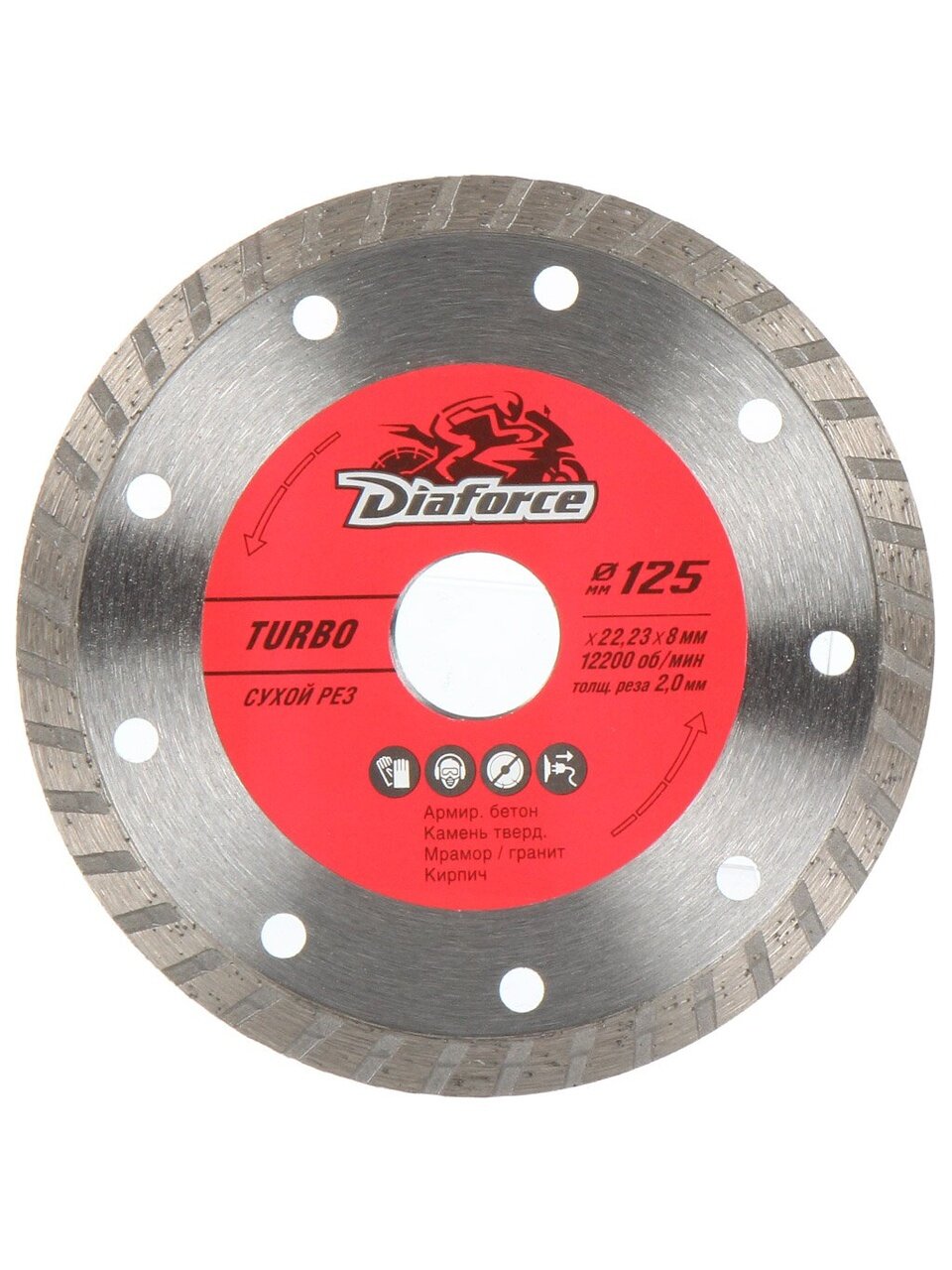Вы можете приобрести «Диск отрезной алмазный по армированному бетону, Diaforce, Turbo, сплошной край, 125х22.23х2 мм, сухой рез, 501125» и другие товары в нашем интернет-магазине в Старом Осколе по низким ценам и с бесплатным самовывозом.