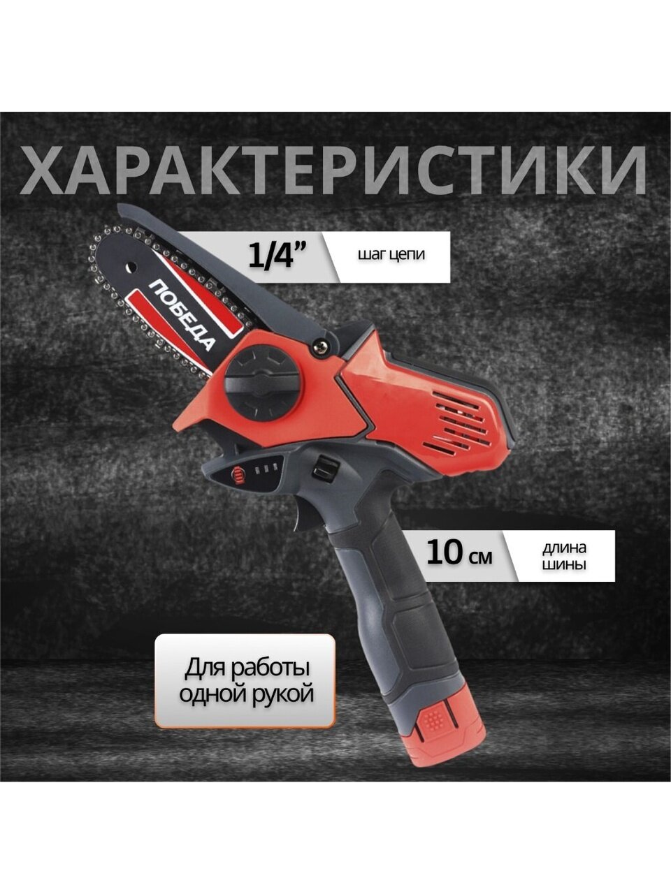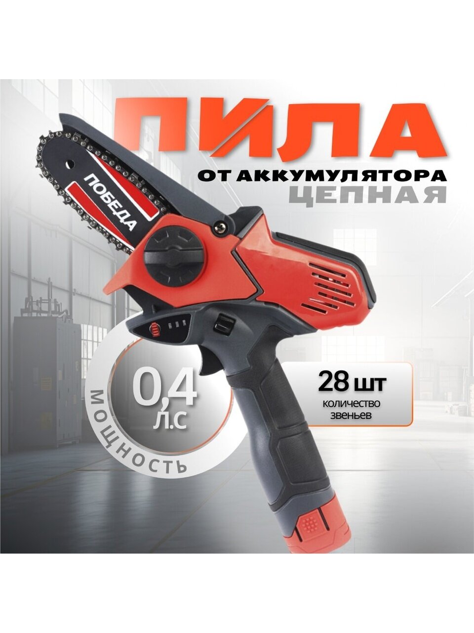 Вы можете приобрести «Пила цепная аккумуляторная, Победа, 0.4 л.с., длина шины 10 см, шаг цепи 1/4 дюйм, 28 звеньев, 250205150» и другие товары в нашем интернет-магазине в Ставрополе по низким ценам и с бесплатным самовывозом.