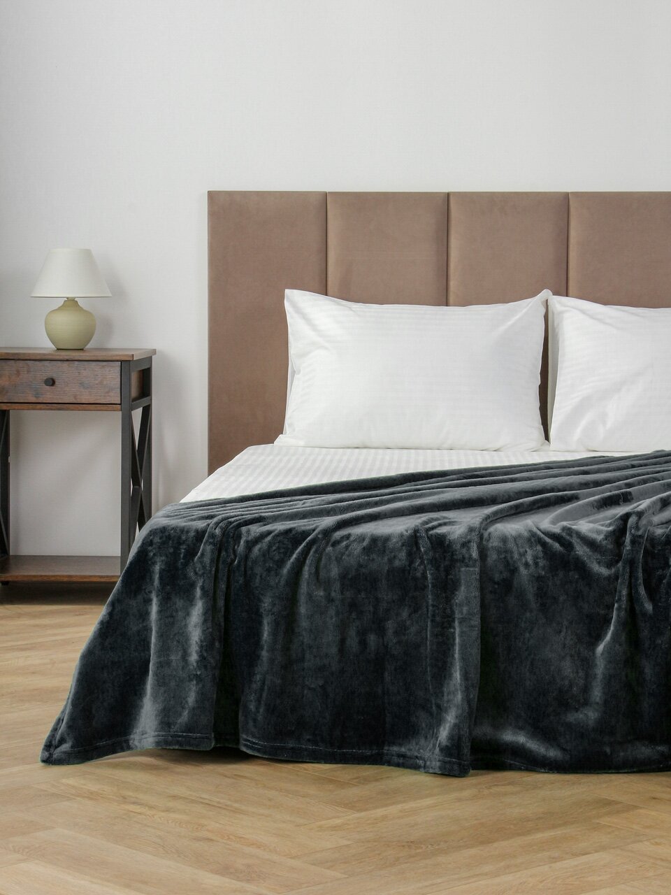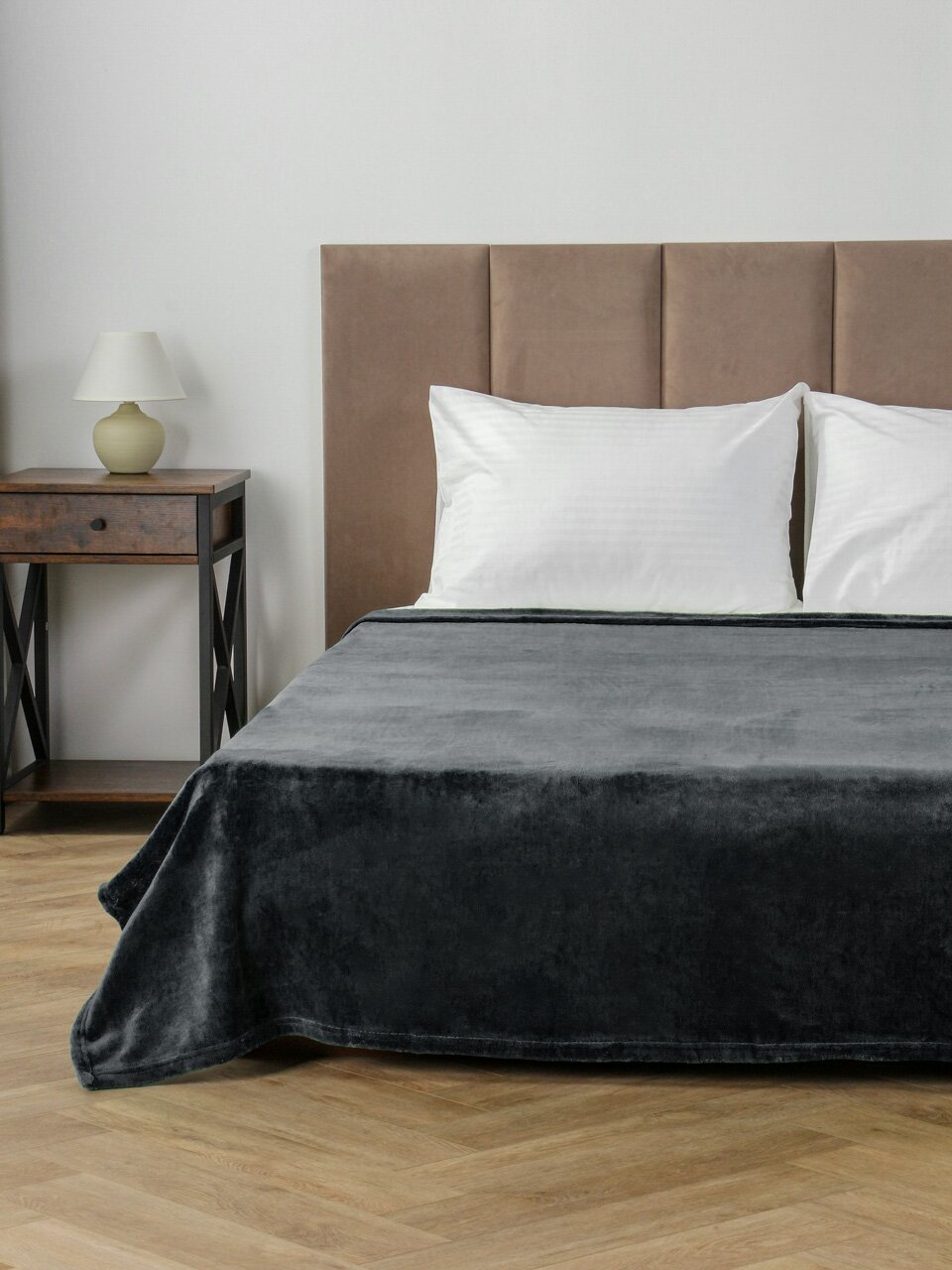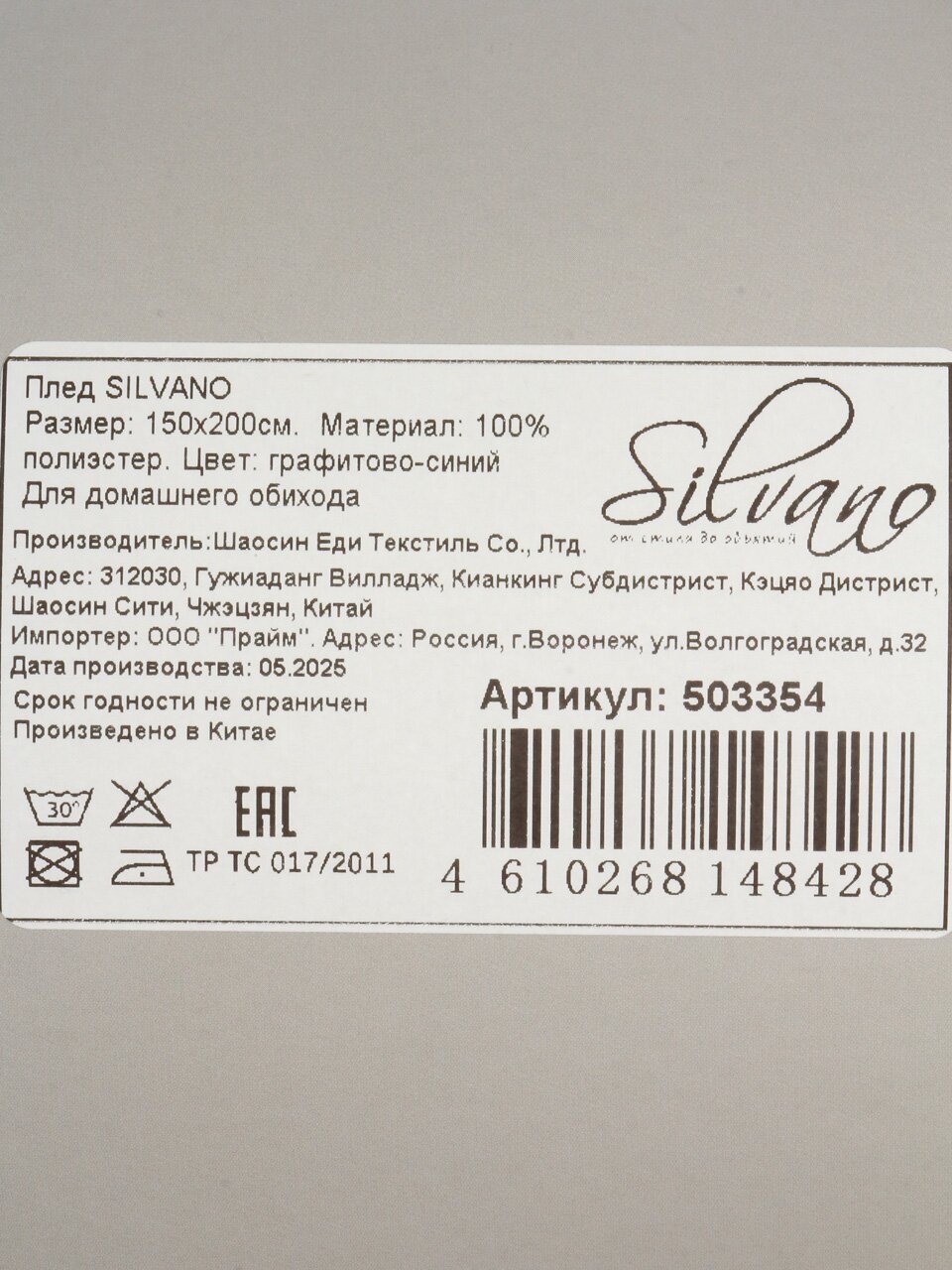 Плед 150*200 см из микрофибры Silvano: уют за 1 минуту, стильный графитово-синий цвет, не скатывается, оптимальная плотность 280 г/м² — лучший выбор для дома и дачи.