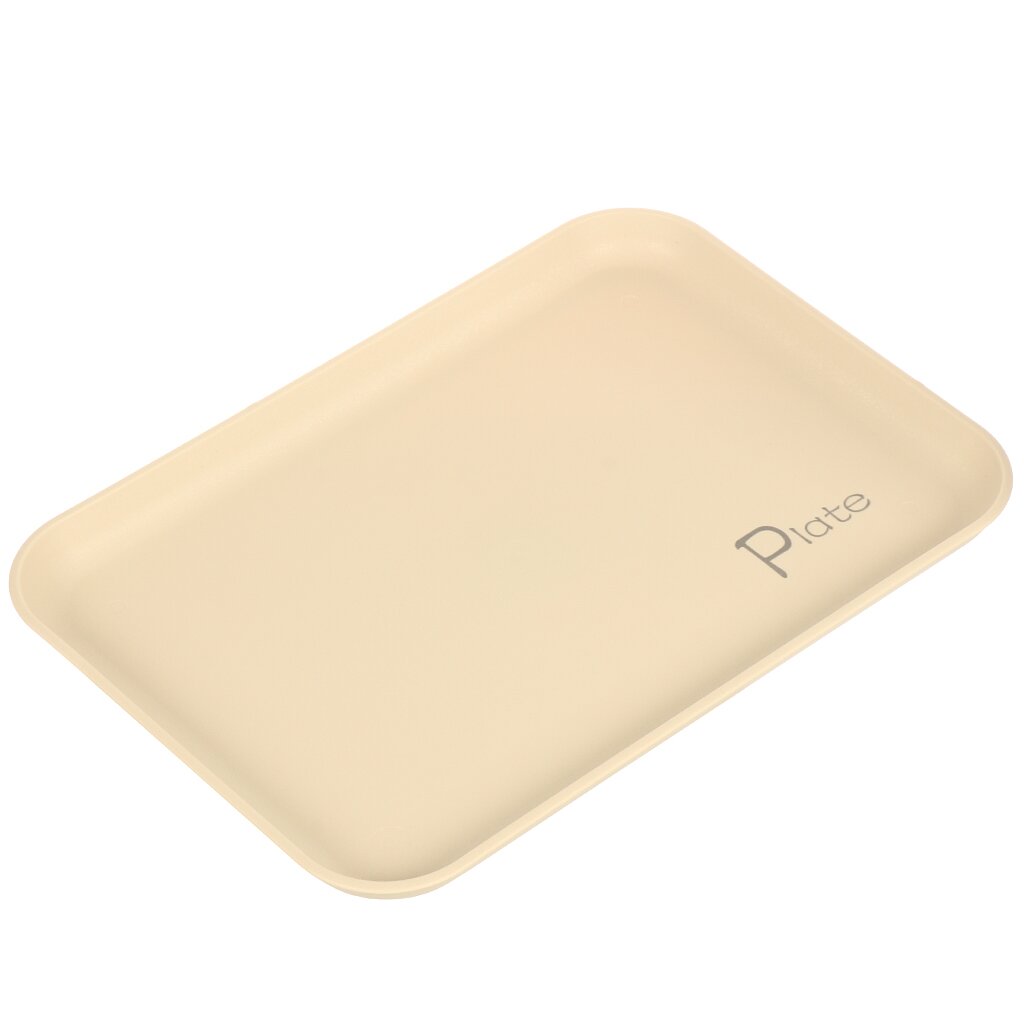 Универсальный пластиковый поднос 25.5х36 см: удобство сервировки дома и на даче, безопасен для посудомоечной машины, приятный бежевый цвет.