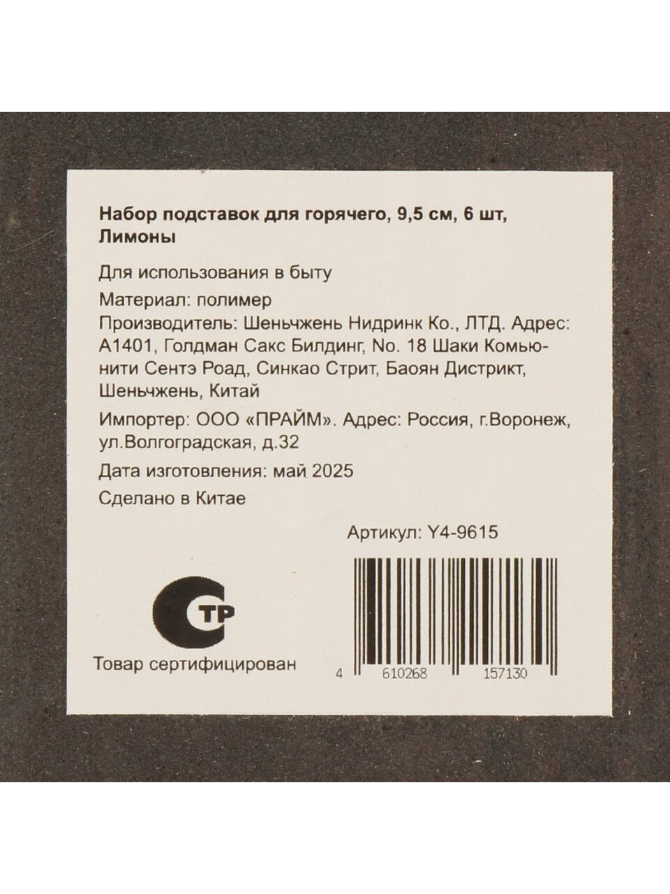 Вы можете приобрести «Набор подставок под горячее, полимер, 6 шт, квадратный, 9.5 см, Daniks, Лимоны, Y4-9615» и другие товары в нашем интернет-магазине в Санкт-Петербургe по низким ценам и с бесплатным самовывозом.