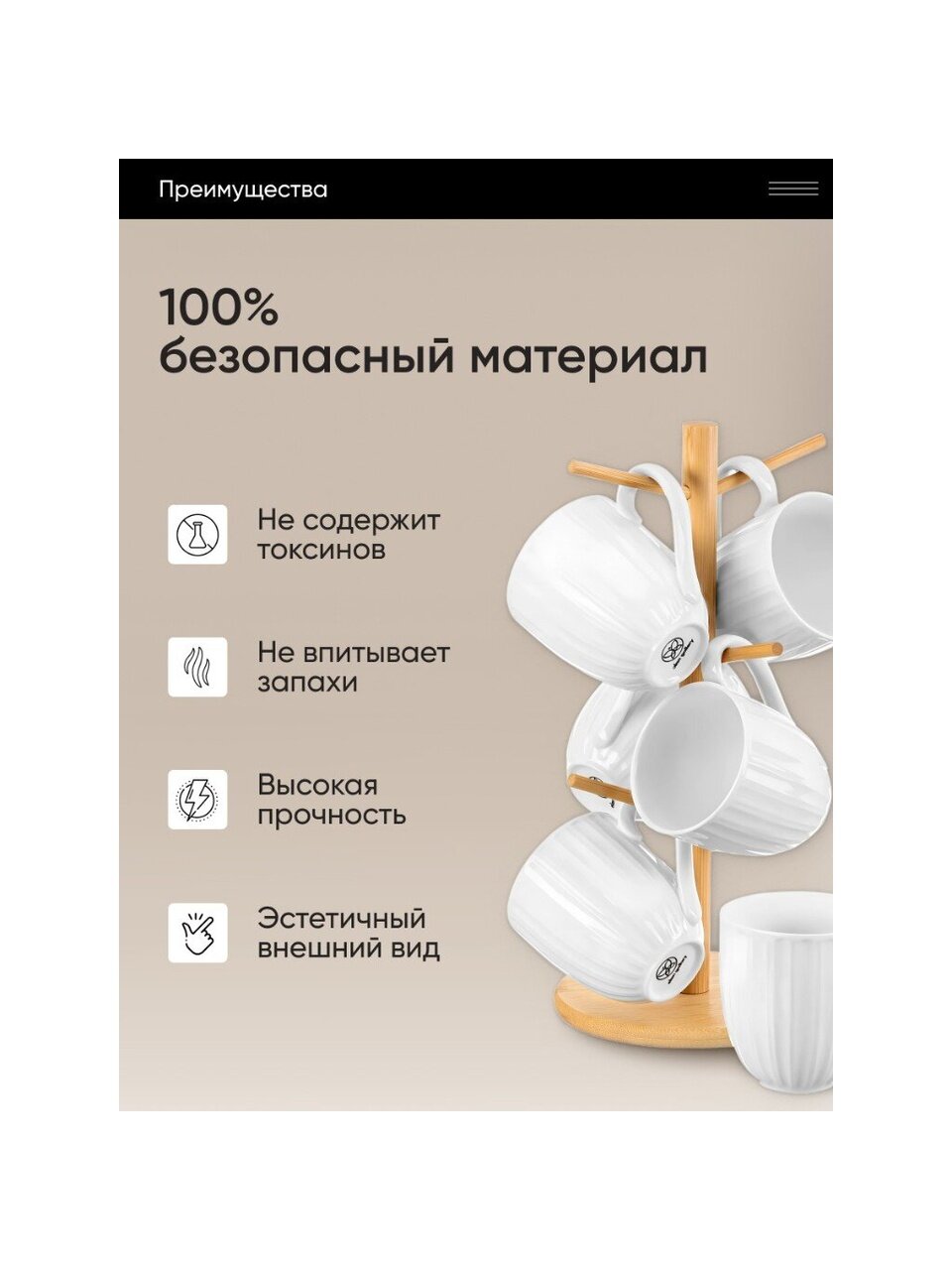 Хранить кружки и чашки в выдвижных ящиках или на закрытых полках не всегда удобно, особенно если в семье часто любят пить чай или баловать себя чашечкой кофе в течение дня. В этом случае имеет смысл хранить несколько чашек в открытом доступе на специальных держателях. Подставка идеально подходит для хранения и демонстрации кружек разного объема.