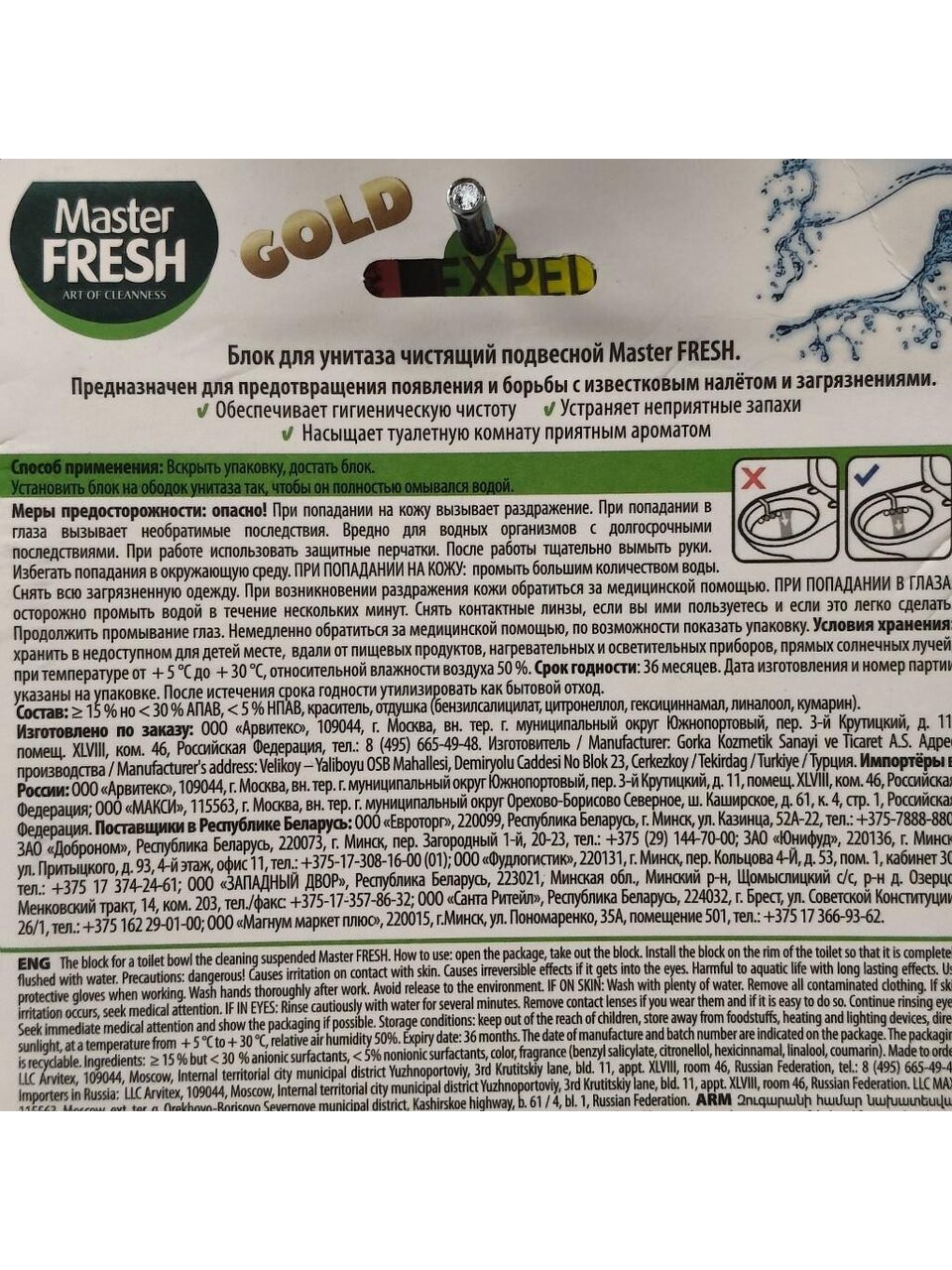 Вы можете приобрести «Подвеска для унитаза Master Fresh, Морской, 2 шт, Duo effect 5 в 1» и другие товары в нашем интернет-магазине в Обнинске по низким ценам и с бесплатным самовывозом.