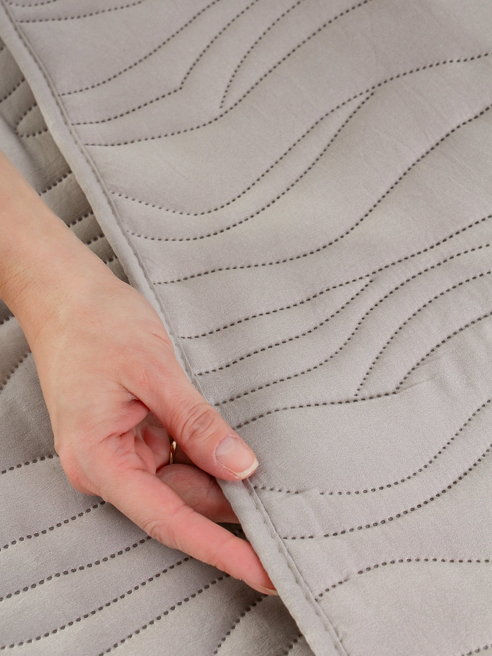 Покрывало Silvano Wave 240х260 см — это оптимальный выбор для тех, кто ищет недорогое покрывало на евро-кровать с современным дизайном. Благодаря 100% полиэстеру изделие не теряет форму, легко стирается и быстро сохнет. Стеганая структура предотвращает скольжение и сохраняет аккуратный вид даже при ежедневном использовании. Если вы спрашиваете, какое покрывало выбрать для спальни в стиле минимализм, обратите внимание на этот вариант: он универсален и не перегружает пространство.