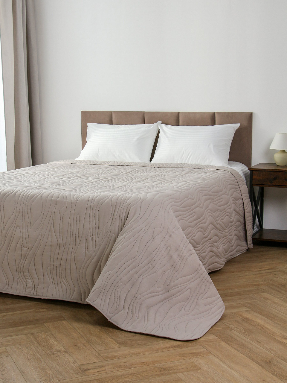 - Современный минимализм: однотонный серый цвет и стеганый узор гармонично впишутся в любой интерьер.