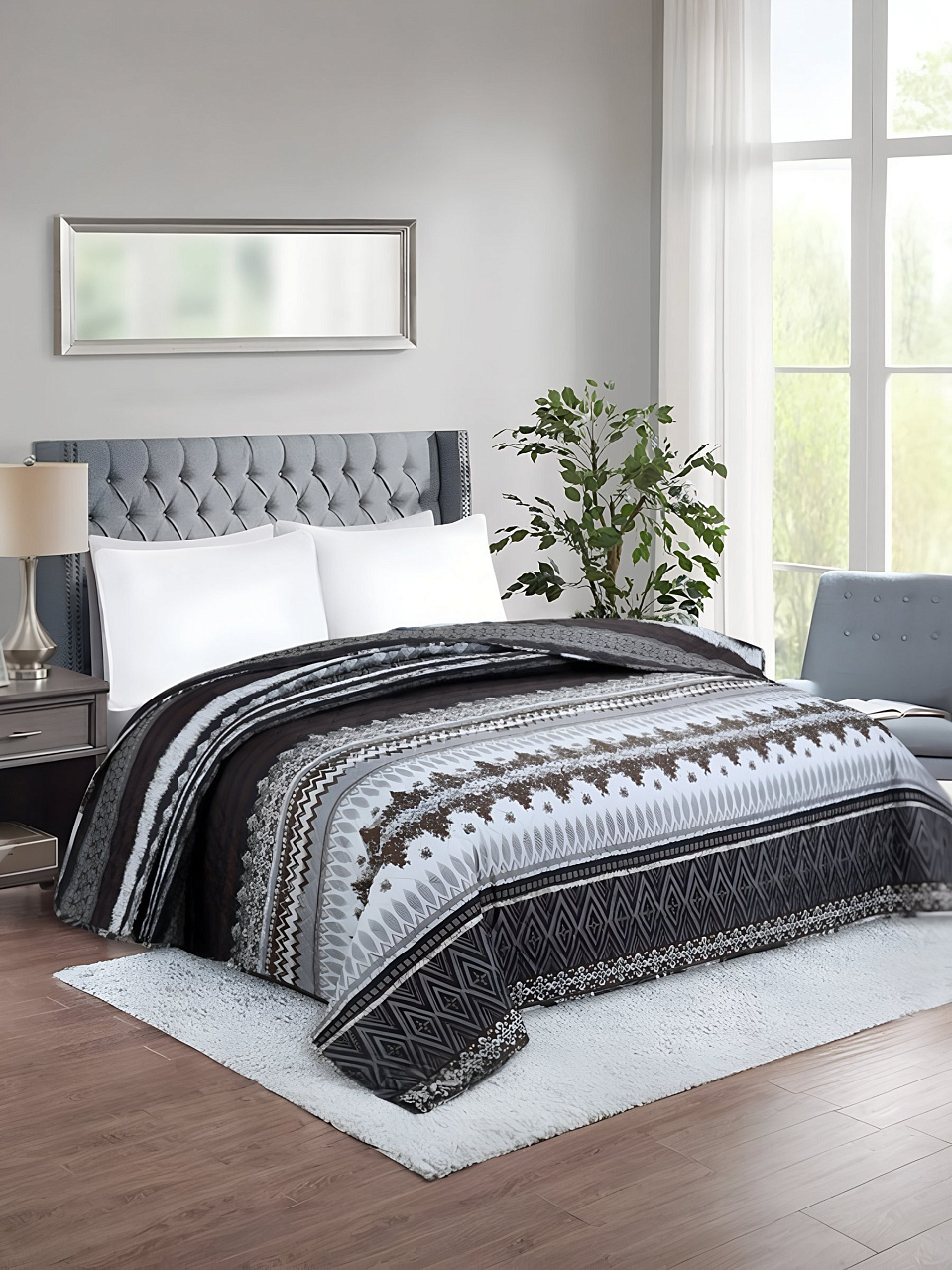 Покрывало имеет размер 220х200 см, что позволяет использовать его как для дивана, так и для пикника, обеспечивая комфорт и удобство в любых условиях. Стеганый дизайн с узором придает изделию дополнительный объем и текстуру, создавая визуально привлекательный эффект. Элегантное сочетание практичности и эстетики делает это покрывало незаменимым элементом домашнего текстиля.