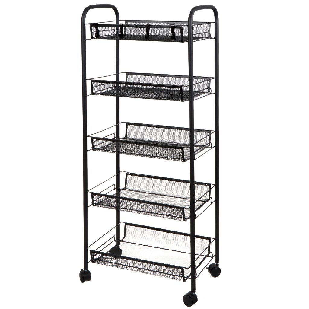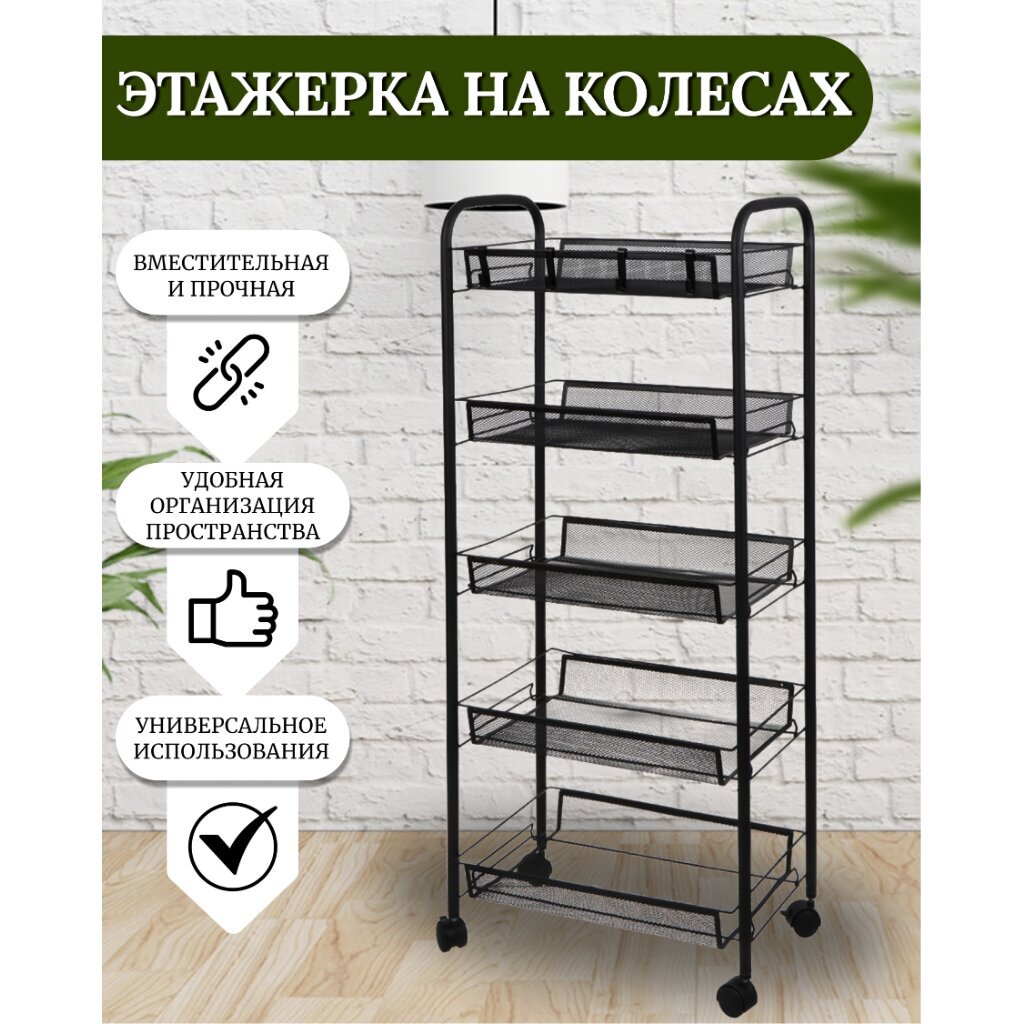Полка напольная 5-ярусная долговечна, благодаря корпусу и корзинам из стали. Широкие корзины вместят большой объем предметов, продуманные расстояния между ними позволят разместить как мелкие, так и высокие предметы. Конструкция этого экземпляра очень проста, так что сборка происходит быстро. При необходимости этажерку легко передвинуть за счет колесиков. Одним из основных преимуществ таких полок является то, что они упрощают поиски нужных предметов, поскольку все необходимое находится под рукой.
